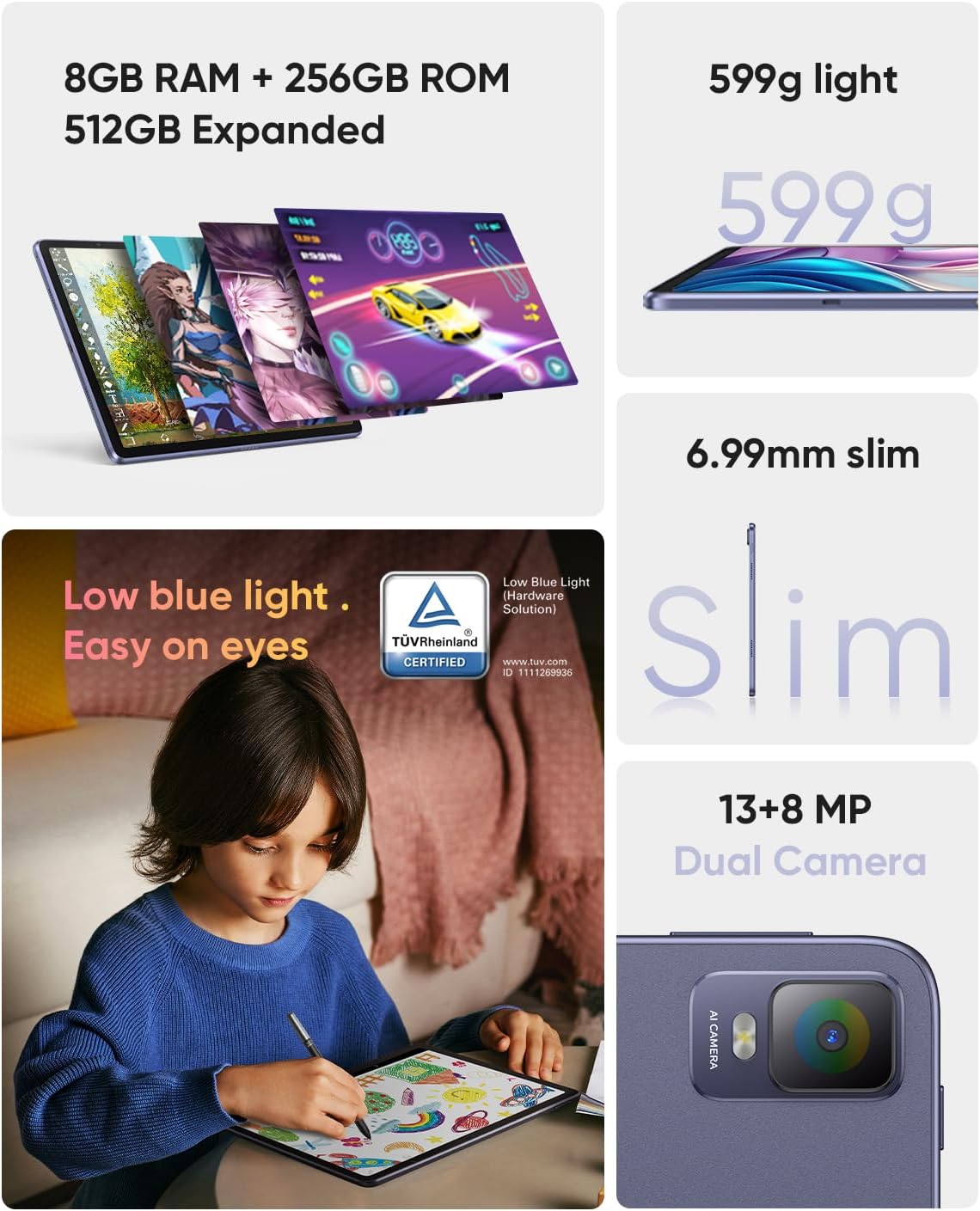 Ample Storage & High Performance: With Android 14 system, 8GB RAM and 256GB storage (expandable up to 512GB), plus 13MP rear & 8MP front cameras, capture inspiration and store all your creative projects with ease