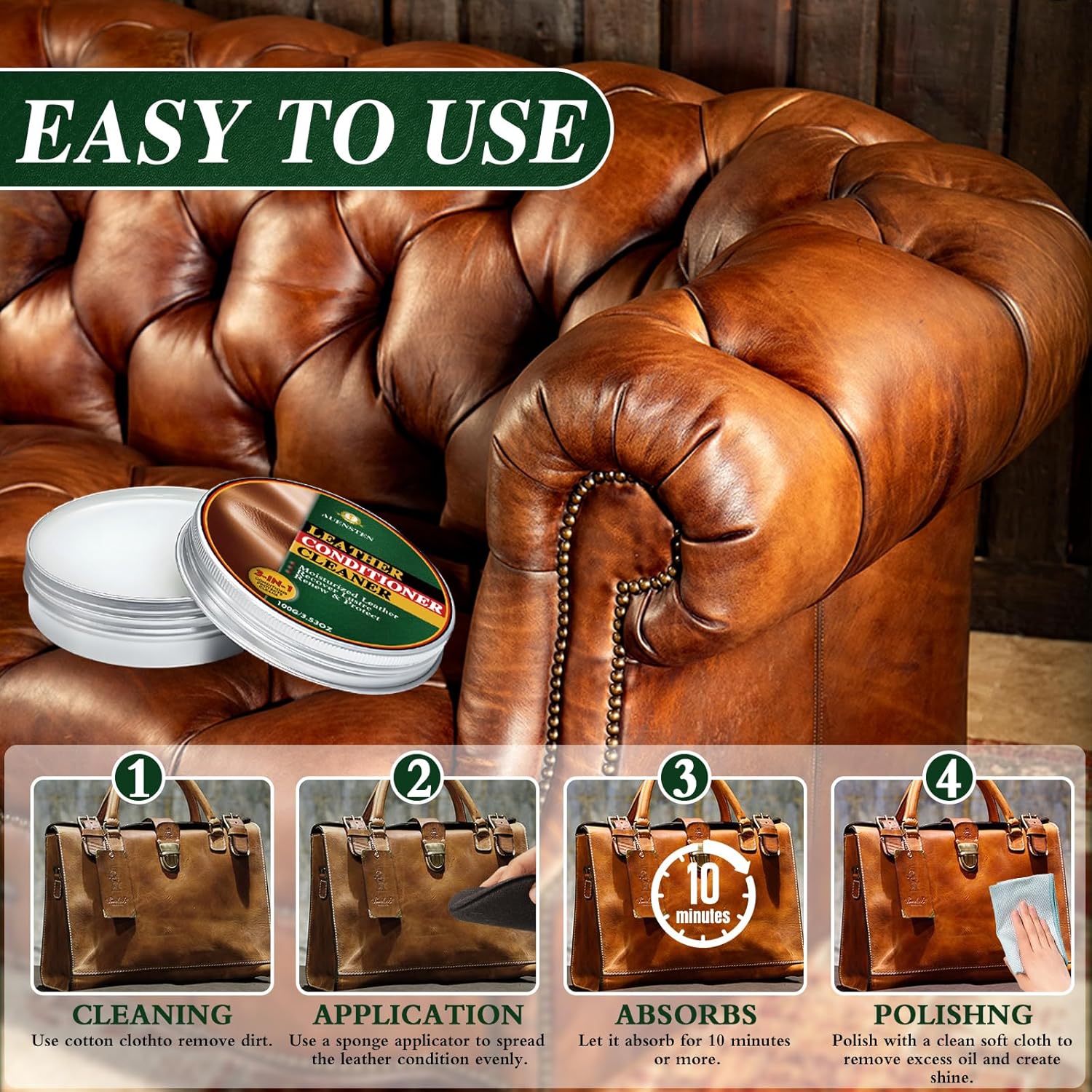 Leather Conditioner: The pure mink oil balm deeply moisturizes and nourishes leather with a premium ingredients, including mink oil, beeswax, lanolin, and fatliquor. Leather cleaner penetrates deep into cracks to soften, nourish and protect leather, maintaining breathability and enhancing the leather's quality