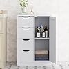 Walsunny Bathroom Floor Storage Cabinet, Wood Storage Cabinet with 4 Drawers and 1 Door, Freestanding Storage Organizer with Adjustable Shelves for Bathroom, Living Room, Kitchen