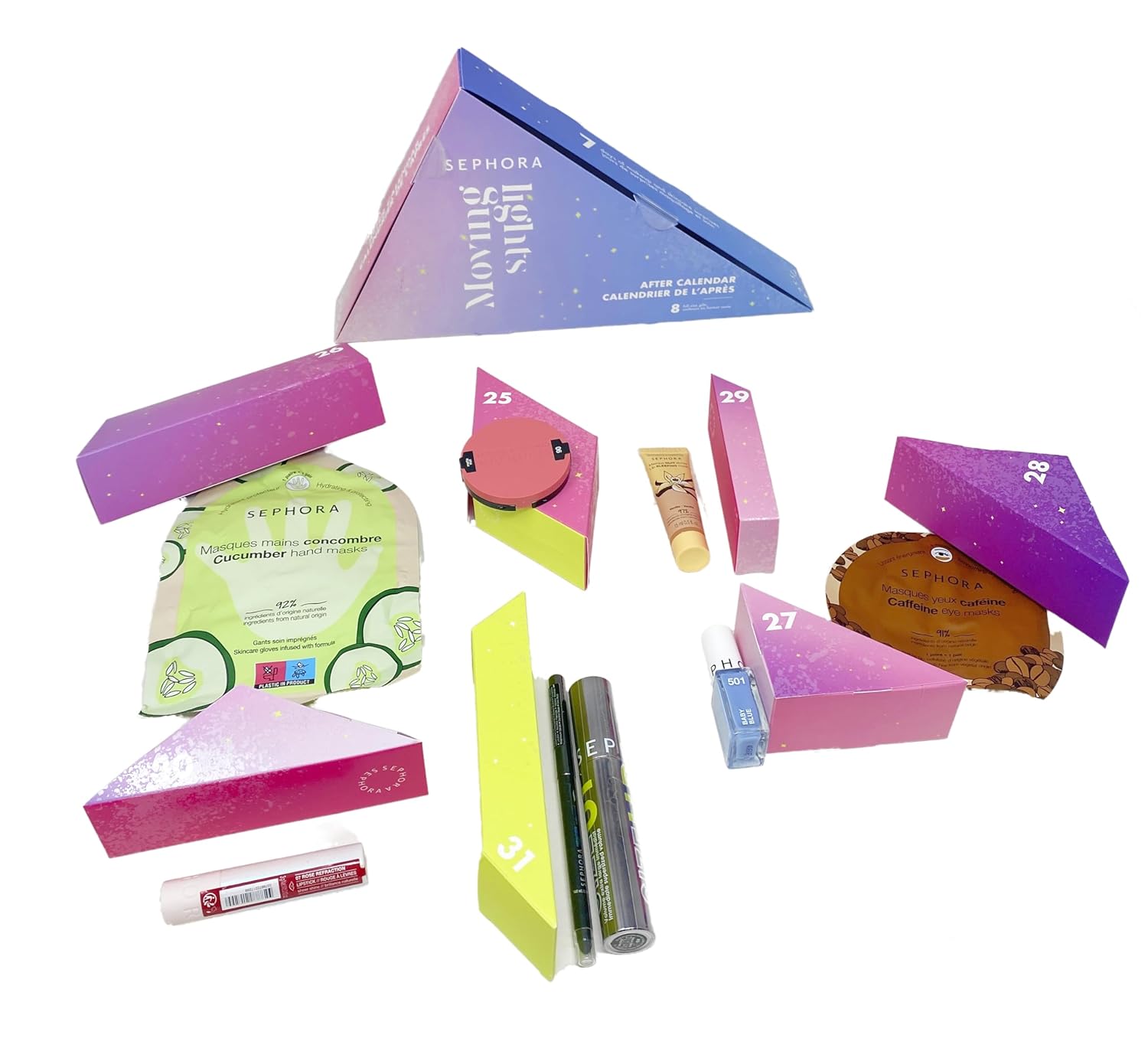INGREDIENTES: Mascarilla de Mano de Pepino: Aqua (Agua), Glicerina, Butileno Glicol, Propandiol, Alcohol, Betaína, 1,2-Hexanodiol, Isomaltato de Sacarosa, Hidroxiacetofenona, Arginina, Carbómero, Parfum (Fragancia), Hialuronato de Sodio, Copolimero de Acrilato de Amonio Acriloilodimetiltaurato/VP, Poligliceril-4 Caprato, Poligliceril-6 Caprilato, Extracto de Flor de Camellia Japonica, Copolimero de Acrilato de Glicerilo/Acido Acrílico, Extracto de Fruto de Cucumis Sativus (Pepino), Acido Cítrico, Sodium Citrato. Rubor Mate Colorido en 06 Flirt It Up: Mica, Caolín, Carbonato de Calcio, Estearato de Zinc, Triglicerideo de Caprilato/Caprinato, Cera de Oryza Sativa (Rice) Bran Wax, Celulosa Microcristalina, Alcano C13-15, CI 77492 (Oxidos de Hierro), CI 77491 (Oxidos de Hierro), Hidróxido de Aluminio, Etilhexilglicerin, CI 15850 (Red 7 Lake), Ácido Sorbico, CI 15850 (Red 7), Tocoferol, Aceite de Semilla de Helianthus Annuus (Semillas de Girasol), CI 77499 (Oxidos de Hierro), CI 19140 (Yellow 5 Lake), CI 42090 (Blue 1 Lake), CI 77007 (Ultramarinos), CI 77742 (Violeta de Manganeso), CI 77891 (Dióxido de Titanio). Delineador de Ojos Resistente al Agua Retráctil en 01 Negro: Ciclopentasiloxano, CI 77499 (Oxidos de Hierro), Cera de Abeja Sintética, Cera Microcristallina (Cera Microcristalina), Mica, Trimetilsiloxano, Copolimero de VP/Hexadeceno, Lauril Miristato, CI 77510 (Ferric Ammonium Ferrocyanide), Copolimero de Cetearilo Dimetilsilicona C30-45, Alcohol Miristílico, Tocoferol, Lecitina, Ascorbil Palmitato, Estearil Glicerol, Silicato de Magnesio, Oleato de Glicerilo, Acido Cítrico. Mascarilla de Ojos de Cafeína: Aqua (Agua), Butileno Glicol, Glicerina, Filtrado de Fermentación de Arroz (Sake), Poligliceril-10 Laurato, 1,2-Hexanodiol, Hidroxiacetofenona, Lecitina, Maltosa, Poliacrilato de Sodio, Parfum (Fragancia), Extracto de Hoja de Agave Tequilana, Caprilato de Sorbitan, Goma Xantana, Hialuronato de Sodio, Cafeína, Extracto de Hoja de Camellia Sinensis, CI 19140 (Yellow 5), Acido Cítrico, Extracto de Semilla de Coffea Arabica, CI 16035 (Red 40), Benzoato de Sodio, Sorbato de Potasio, CI 42090 (Blue 1). Mascarilla de Dormir para los Labios de Vainilla: Triisostearina, Poliglicéridos de Oleico/Linoleico/Linolénico, Butyrospermum Parkii Butter (Manteca de Butyrospermum Parkii (Manteca de Karité)), Trihidroxiestearina, Silica Dimetilsilil, Aceite de Semilla de Helianthus Annuus (Semillas de Girasol), Parfum (Fragancia), Sacaarina, Bis-Diglicerilo Poliacrilato-2, Octildodecanol, CI 77947 (Oxido de Zinc), Tocoferol, Extracto de Fruto de Vanilla Planifolia, CI 19140 (Yellow 5 Lake), CI 77491 (Oxidos de Hierro), Acido Cítrico. Esmalte de Uñas en 501 Azul Bebé: Butilacetato, Acetato de Etil, Nitrocelulosa, Trietilcitrato, Alcohol, Copolimero de Adipic Acid/Neopentyl Glycol/Trimellitic Anhydride, Copolimero de Acrilatos, CI 77891 (Dióxido de Titanio), Bentonita de Estearalkonium, Alcohol de Diacetona, CI 77007 (Ultramarinos), Pentaeritritil Tetraisostearato, Tocoferol, Acetato de Tocoferilo, Hidróxido de Aluminio, Trietoxicaprililsilano, CI 77510 (Ferric Ammonium Ferrocyanide), Ácido Fosfórico, Ácido Ascórbico, CI 15850 (Red 7 Lake), CI 77499 (Oxidos de Hierro), Alcohol Isopropílico. Labial Brillo Transparente en 07 Rosa Refracción: Bis-Diglicerilo Poliacrilato-2, Octildodecanol, Rosinato de Hidrogenado de Metano, Polideceno Hidrogenado, Aceite de Semilla de Ricinus Communis (Aceite de Semilla de Ricino), Copolimero de Etileno/Propileno, Polibuteno, Benzoato C12-15 Alquilo, Cera Microcristallina (Cera Microcristalina), Cera Sintética, Almidón de Zea Mays (Maiz), Copolimero de Etileno, Borosilicato de Calcio Aluminio, Butyrospermum Parkii Butter (Manteca de Butyrospermum Parkii (Manteca de Karité)), Aceite de Semilla de Limnanthes Alba (Aceite de Semilla de Meadowfoam), CI 77891 (Dióxido de Titanio), Hectorita de Estearalkonium, CI 77491 (Oxidos de Hierro), Alumina, Parfum (Fragancia), CI 15850 (Red 7), CI 15985 (Yellow 6 Lake), Carbonato de Propileno, Aceite de Semilla de Mangifera Indica (Aceite de Semilla de Mango), Aceite de Semilla de Helianthus Annuus (Semillas de Girasol), Glicirretato de Amonio, Pentaeritritil Tetra-Di-T-Butyl Hydroxyhydrocinnamate, Citrato de Gliceril Estearato, CI 42090 (Blue 1 Lake), Tocoferol, Ascorbil Tetraisopalmitato, Esqualeno, Beta-Sitosterol, Oxido de Estaño. Mascara Voluminizante Tamaño Plus en Negro Ultra: Aqua (Agua), CI 77499 (Oxidos de Hierro), Parafina, Estearil Glicerol, Cera de Abeja Sintética, Ácido Esteárico, Goma de Acacia Senegal, Butileno Glicol, Ácido Palmítico, Cera de Oryza Sativa Cera (Cera de Oryza Sativa (Rice) Bran Wax), Polibuteno, Copolimero de Etileno/Acrilatos, Copolimero de VP/Eicoseno, Ozoquerita, Aminometil Propanol, Aceite Vegetal Hidrogenado, Fenoxietanol, Estearilo Estearato, Hidroxietilcelulosa, Celulosa, Nitrato de Sodio, Dehidroacetato de Sodio, Silicio, Glyoxal.