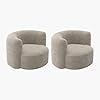 Acanva Luxury Modern Tight Curved Back Velvet Sofa, Minimalist Style Comfy Couch for Living Room Apartment Reception Space, Cream Single Chair Set of 2