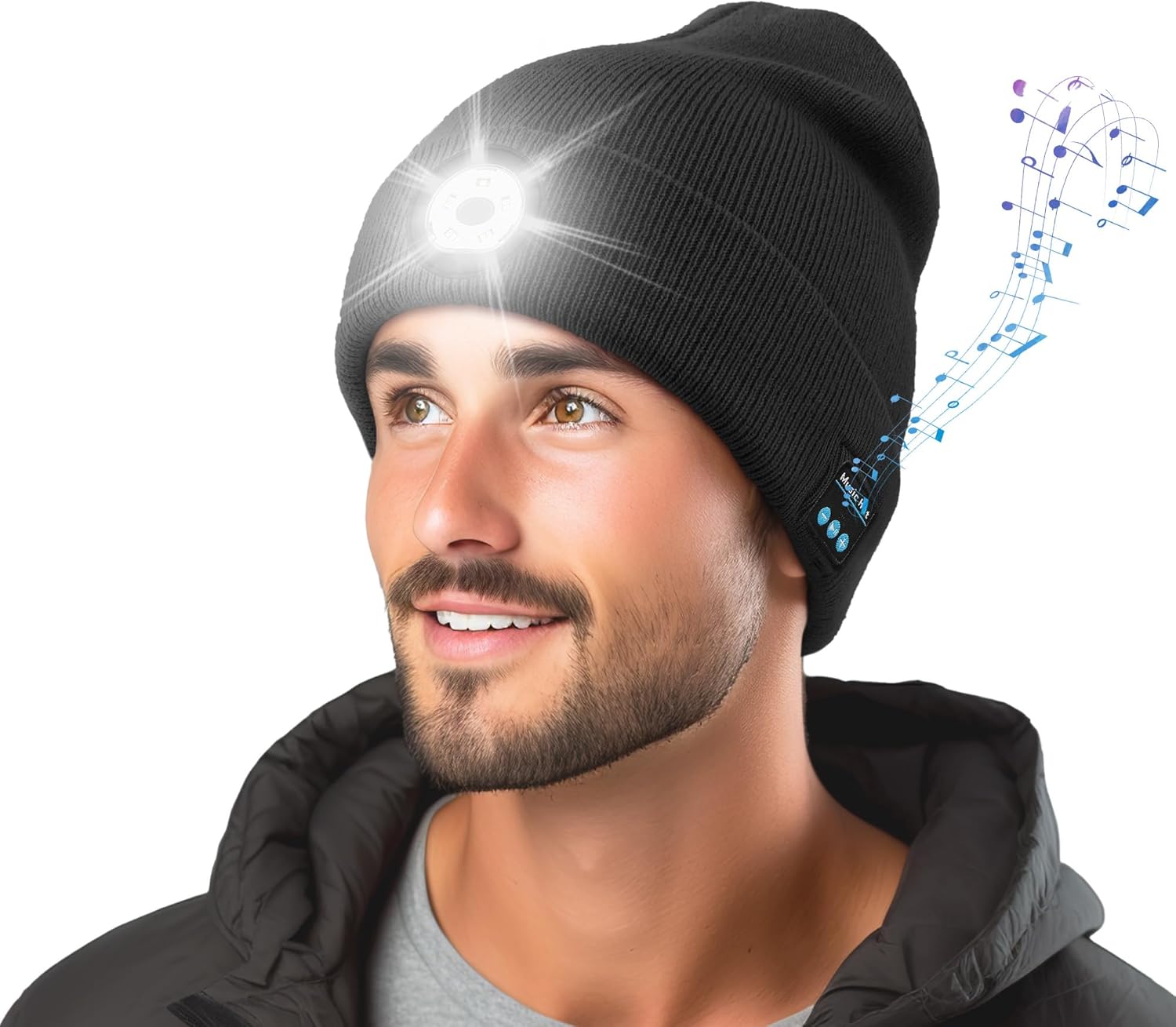 TOUCH TWO® Bluetooth Beanie with Light, 5 LED Beanie with Headphones, Type-C Charge Music Hat for Hiking Cycling and Working
