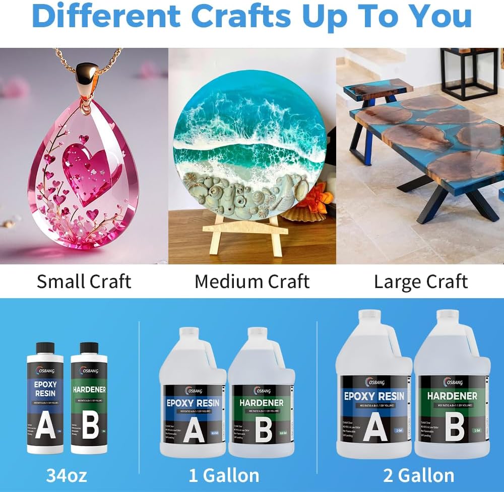 OSBANG Epoxy Resin 1 Gal, Crystal Clear, Hard Type Non-Yellowing, UV Resistant, Beginner & Crafter Kit, Includes Resin, Hardener, Measuring Cups, Gloves, Stirring Sticks, Scraper, Pigments