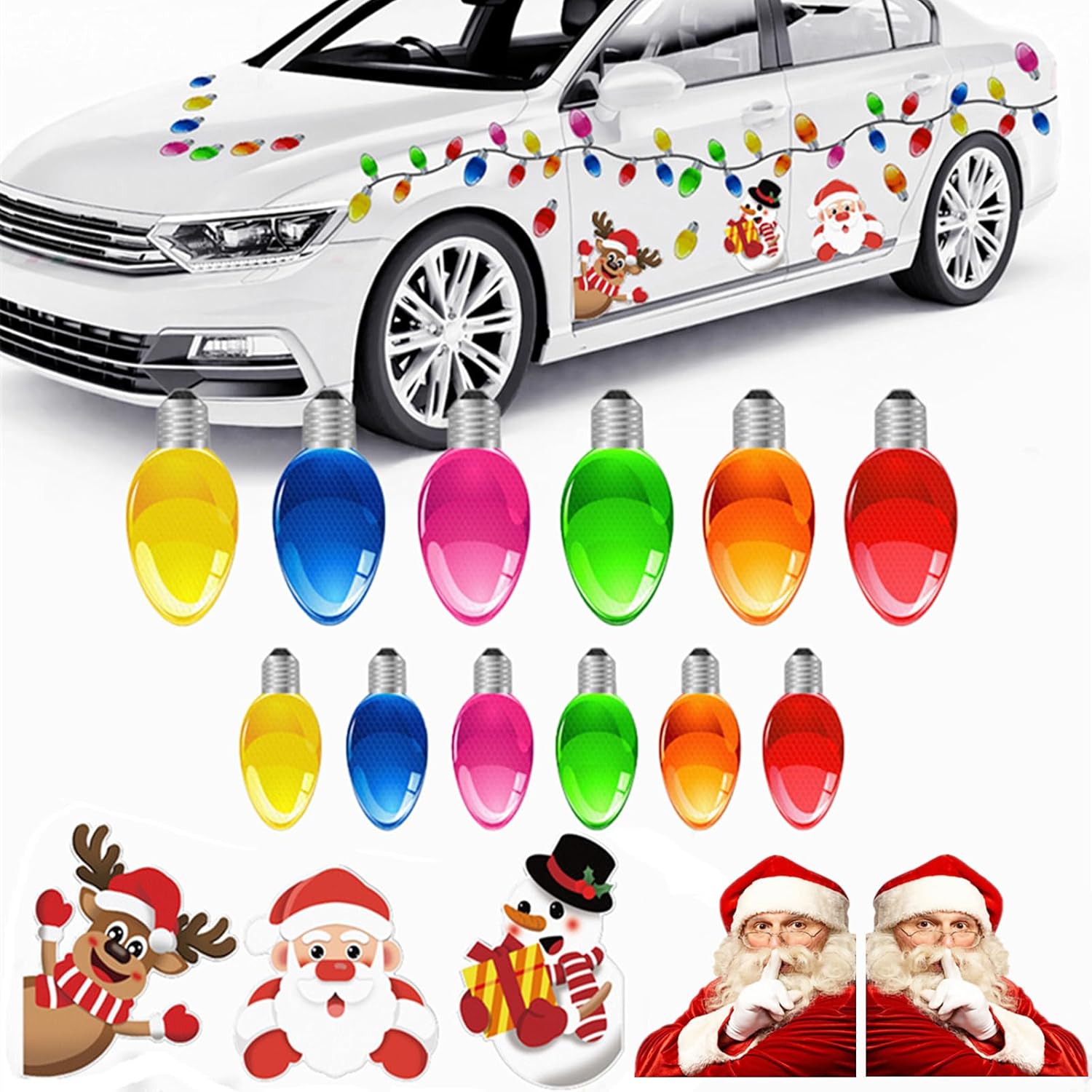 2 PCS Santa Car Window Sticker + Reflective Christmas Car Magnets Set