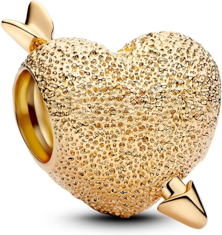 Pandora 14K Gold-Plated Heart and Arrow Charm features a timeless design symbolizing love and affection. Crafted in 14K gold plating, it showcases a heart pierced by an arrow, representing both passion and romantic connection. This elegant charm is perfect for adding a meaningful, stylish touch to your bracelet or necklace.