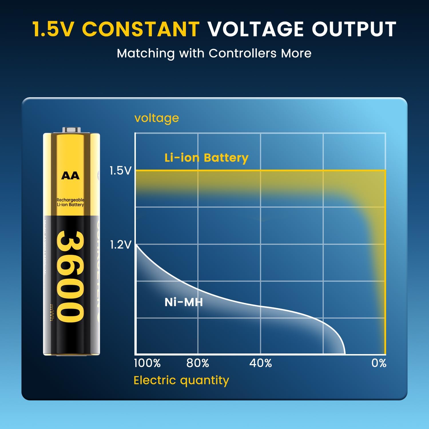 【Ultra-High Capacity & Constant 1.5V Output】: As rechargeable battery pack for oculus quest 2/3/3S controllers, high capacity of 2400mAh would Let you enjoy extended VR sessions without frequent interruptions. Then steady 1.5V output voltage, ensuring your VR controllers and other devices perform optimally until the last drop of power.