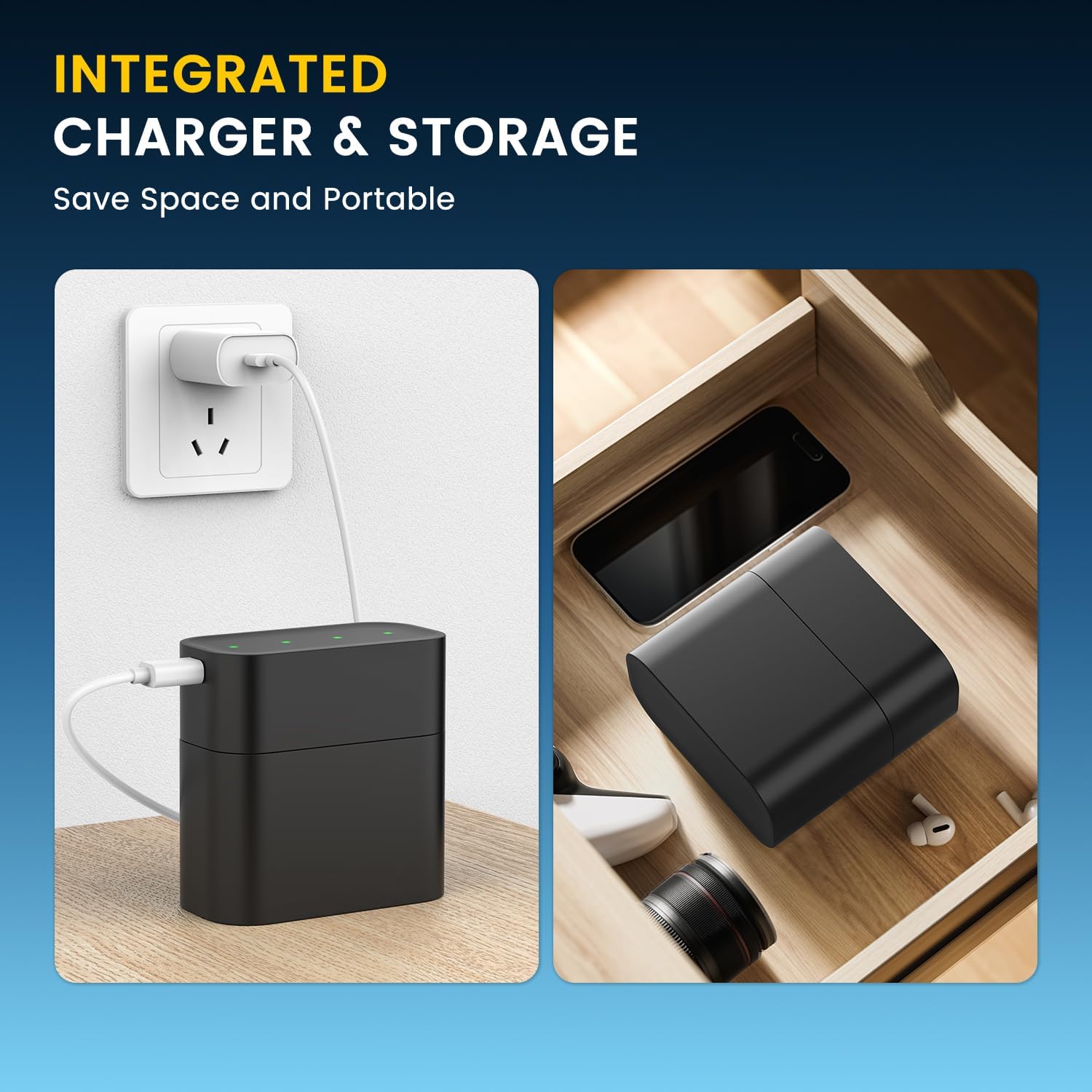 【Compact Charging & Storage】: The included charging case not only charges up to 4 batteries simultaneously but also serves as a compact storage solution, making it easy and convenient to keep the batteries organized and ready for use both indoor and outdoor.