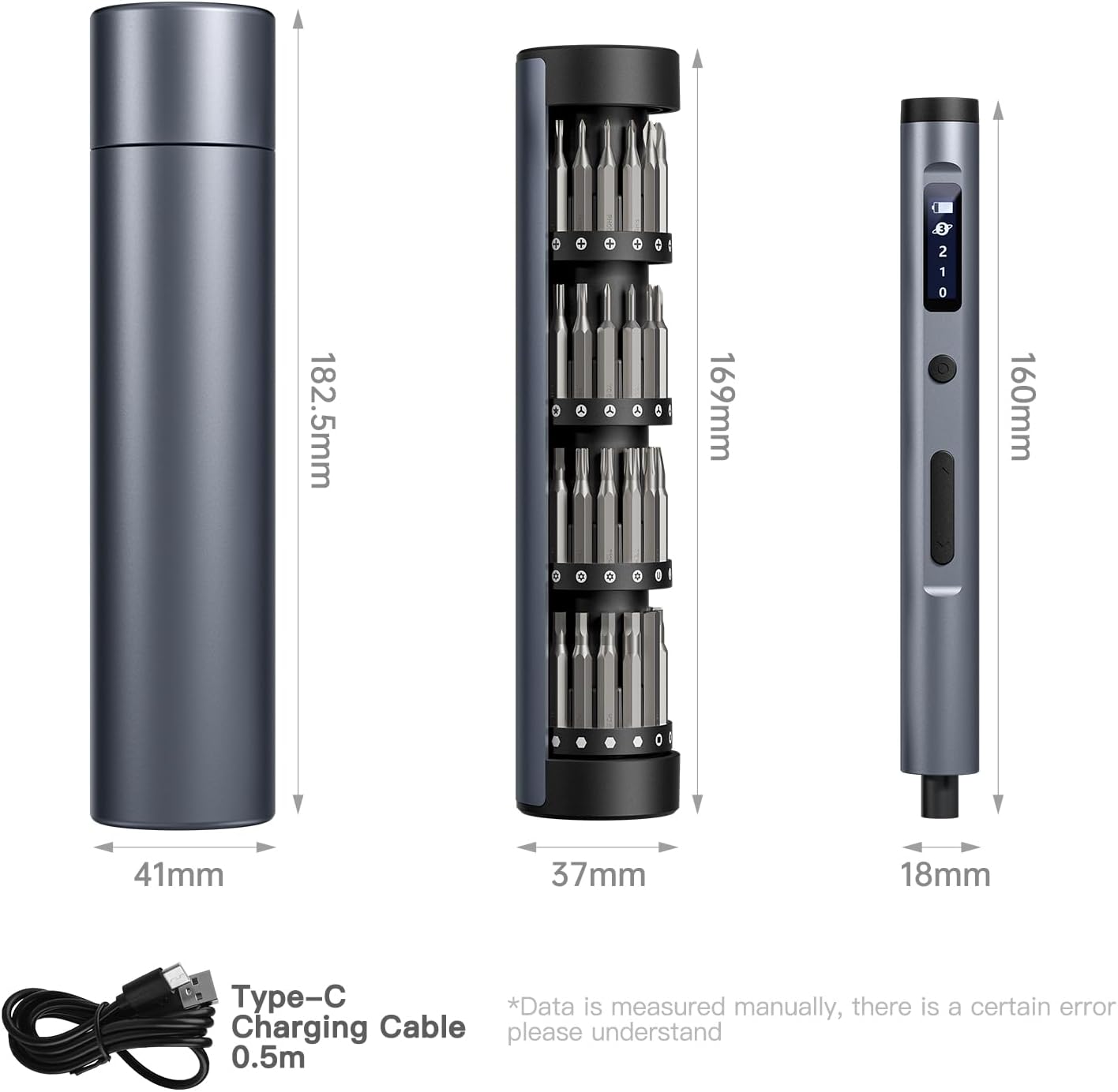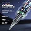Ultra-Precious Torque: Our high-performance electric screwdriver offers an adjustable torque from 0.1 Nm to 0.35 Nm, providing exact torque control for various applications. The LCD screen displays both the charge state and torque level for easy monitoring. Use the 0.1 to 0.15 Nm torque for delicate repairs on smartphones, watches, and glasses. The 0.15 to 0.25 Nm torque is perfect for smart speakers, laptops, and electronics, while the 0.25 to 0.35 Nm torque handles tougher tasks like desktops, cameras, and gaming equipment with ease.