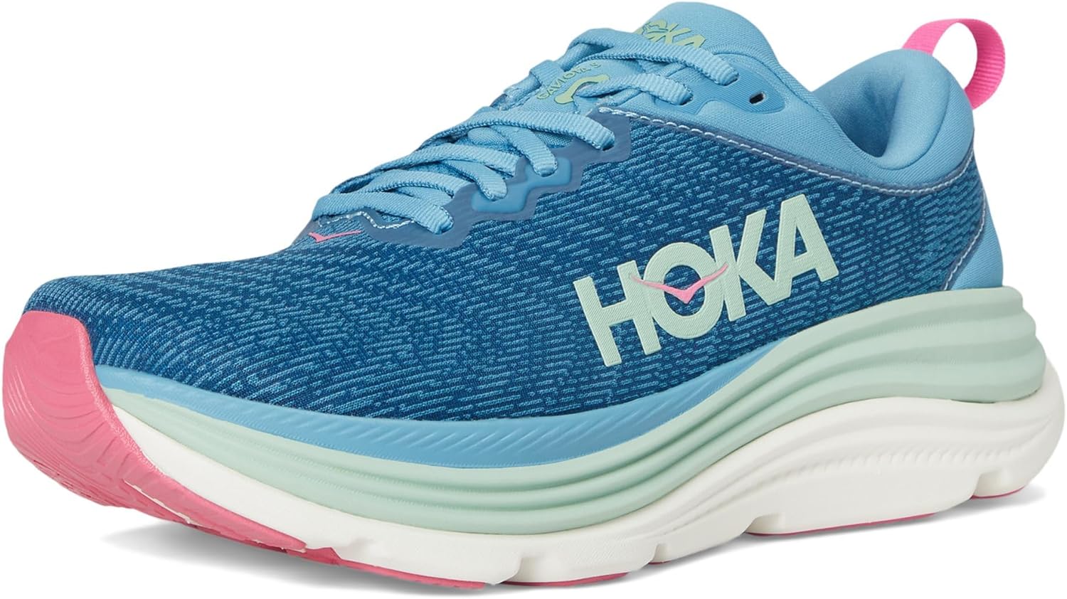 Hoka Women's Gaviota 5 Sneaker, Alpine Blue/Jadeite, 9 Wide