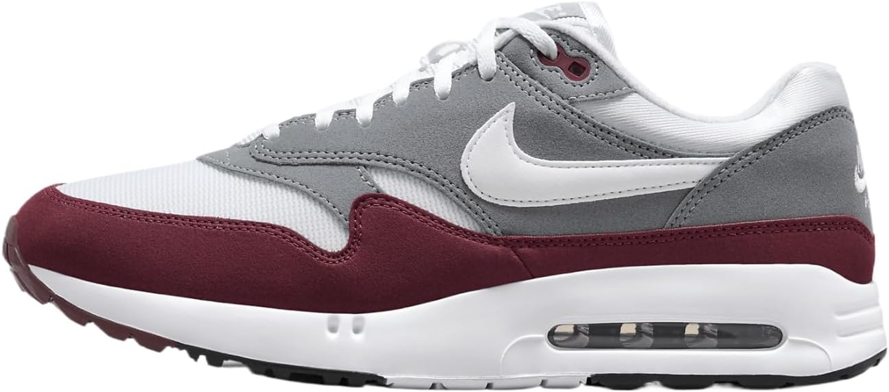 Air Max 1 G. Featuring the 4-window design that lets you peak at the large Air unit underneath, this is on-course cool, confidence and comfort personified. It sports the vintage Air Max 1 details you love, like clean lines and unmistakable colors, and melds them with our game-changing golf technology, so you can play all day, year-round in a timeless fit.