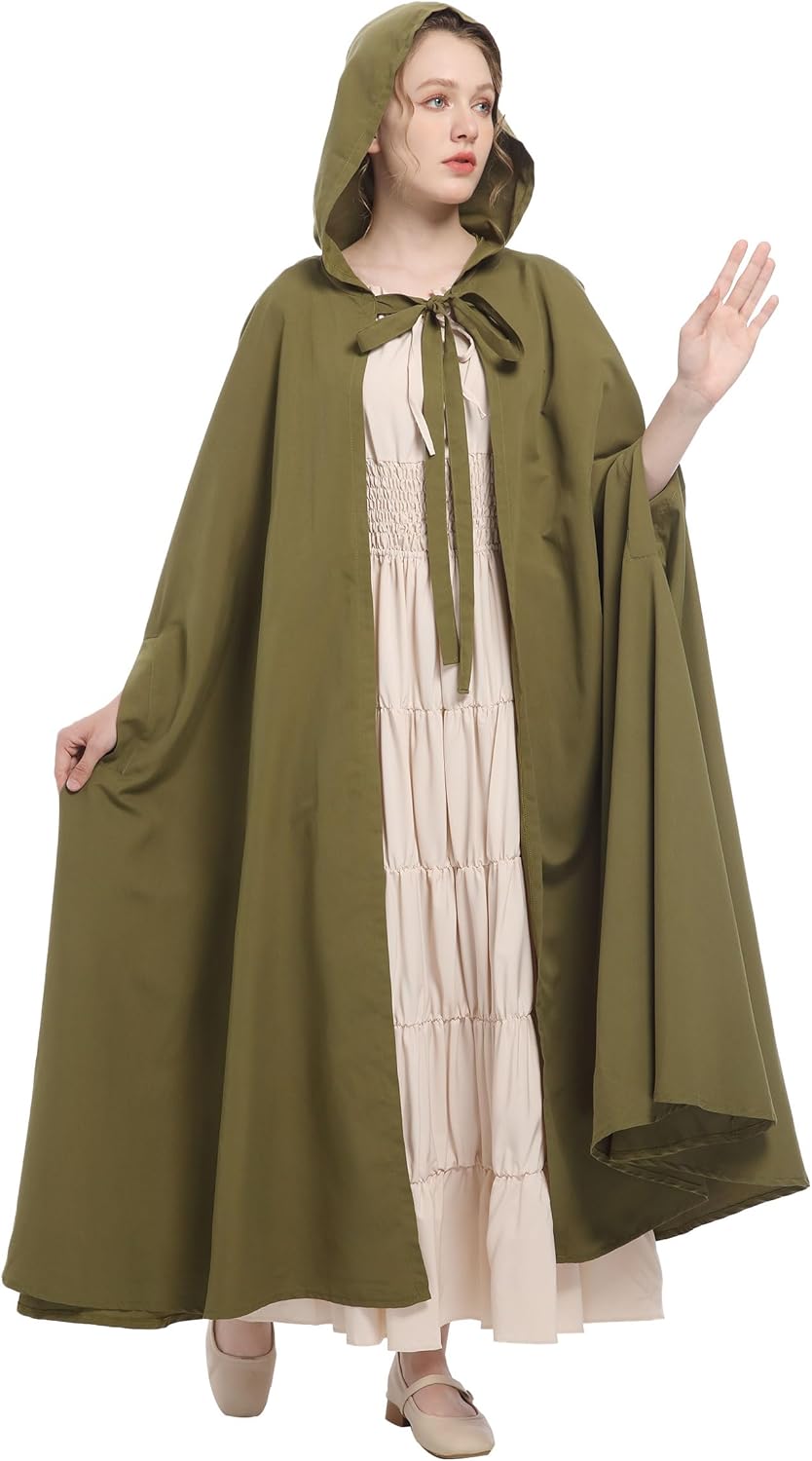 Women Renaissance Cloak with Arm Holes,Medieval Cloak with Hood,Adult Hobbit Cape Halloween