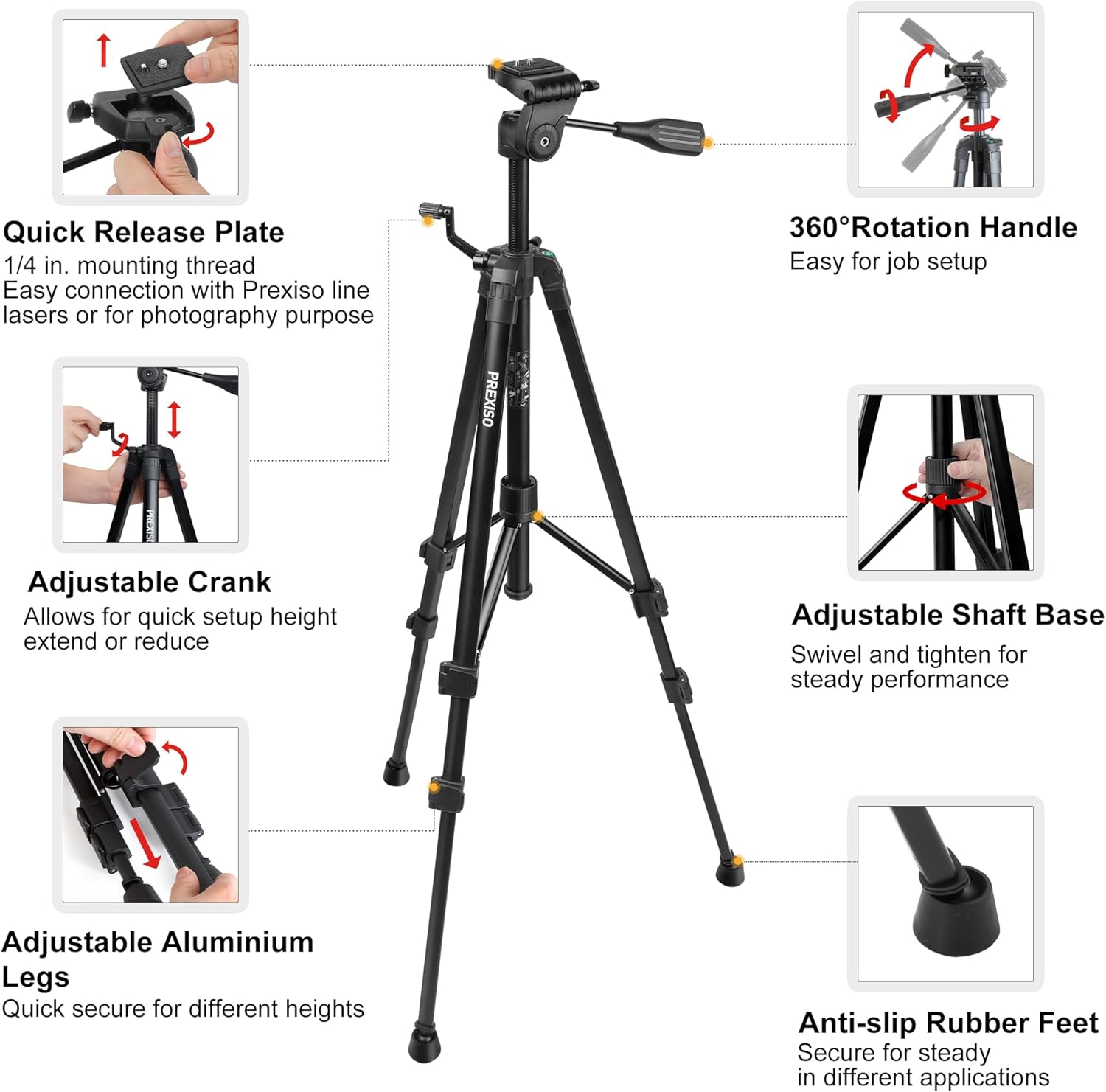 PREXISO Professional Laser Level Tripod - 61 Inch Sturdy Aluminum Tripod for Laser Levels, Lightweight Extendable Tripods Stand with Bag, Anti-Slip Feet, Quick Release Plate with 1/4" Thread