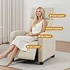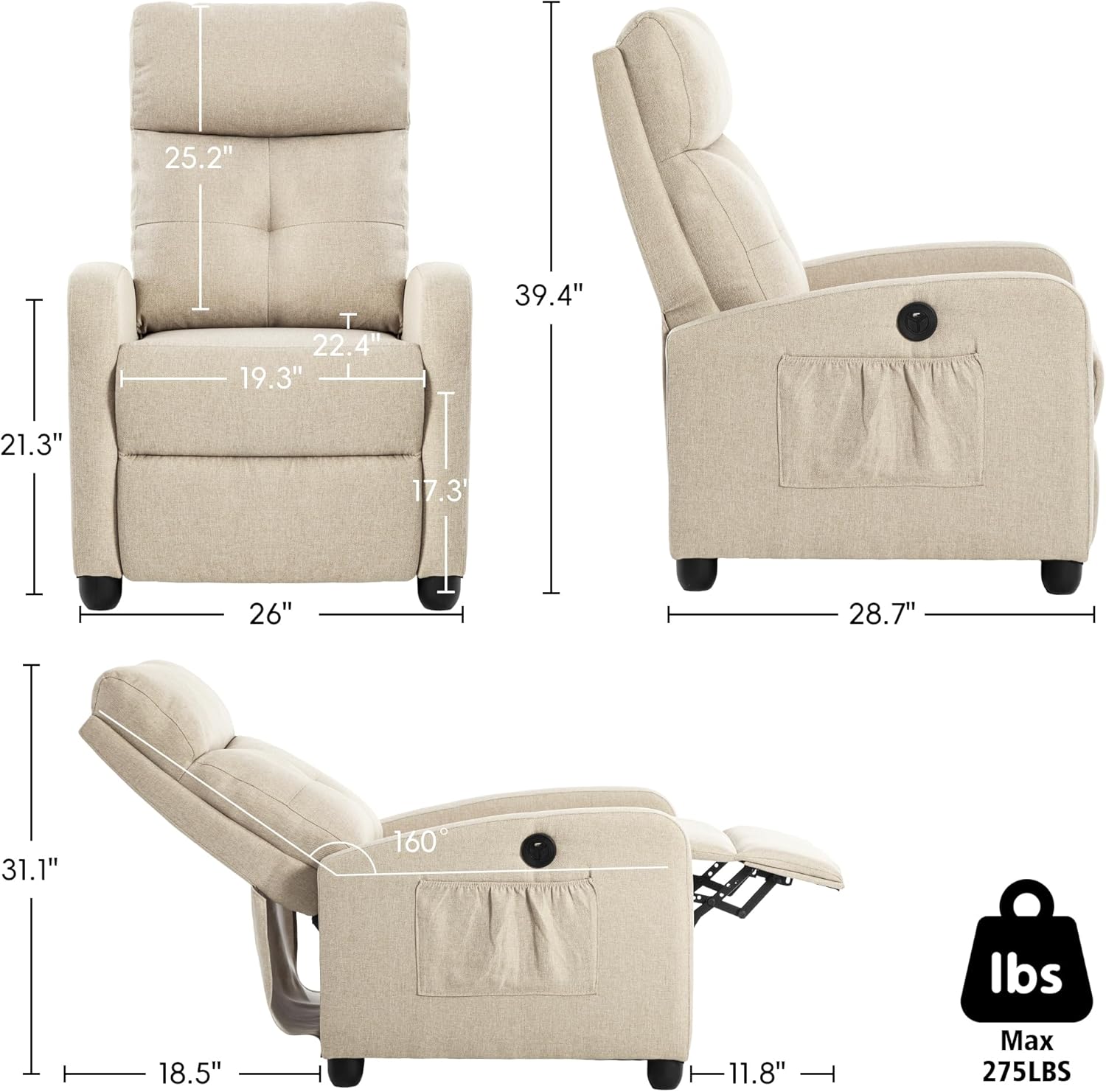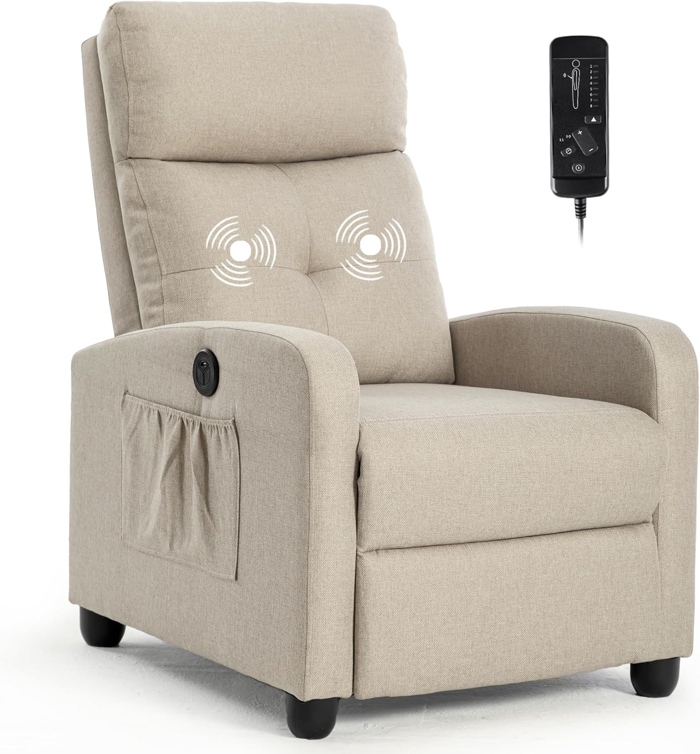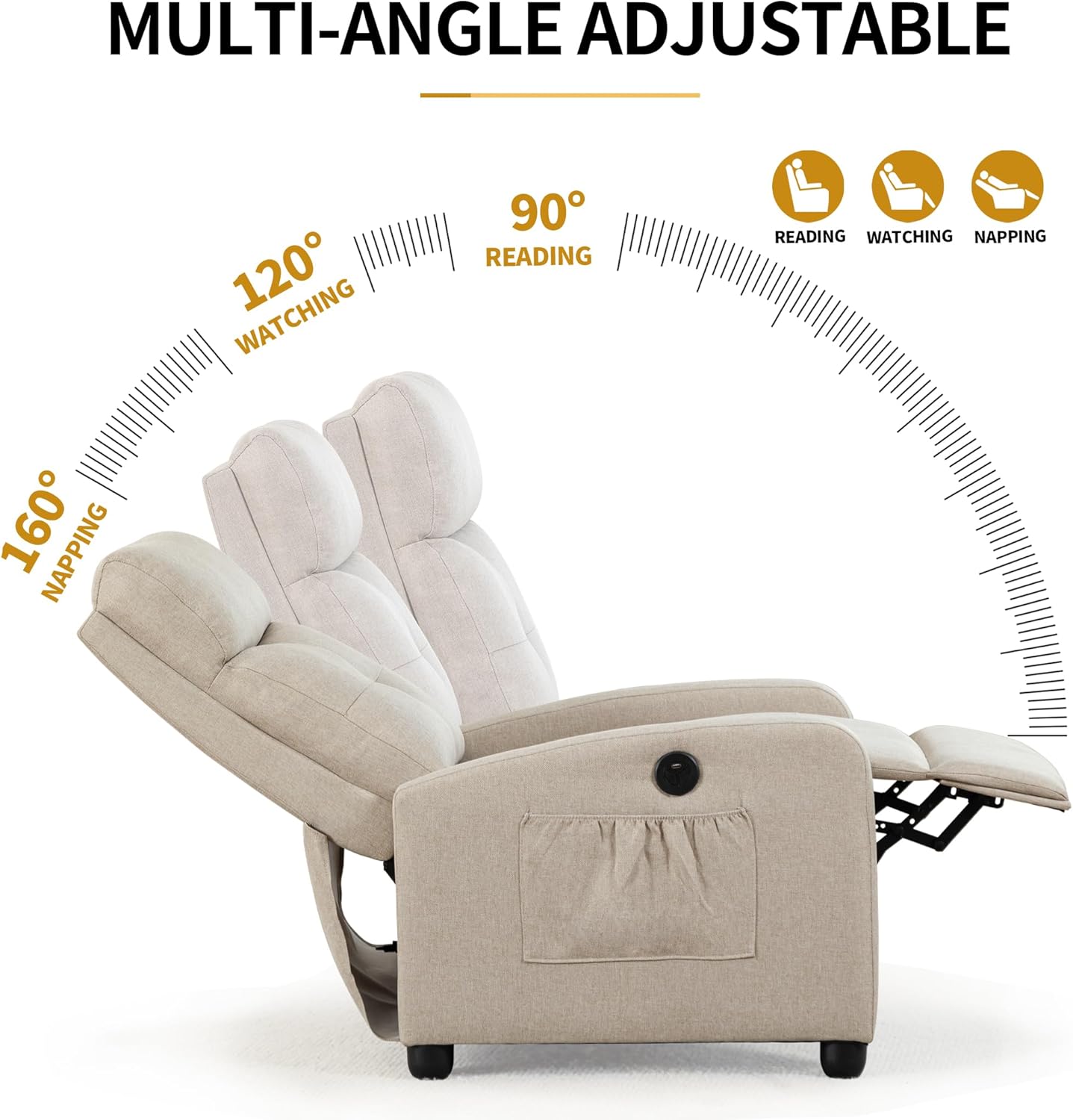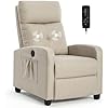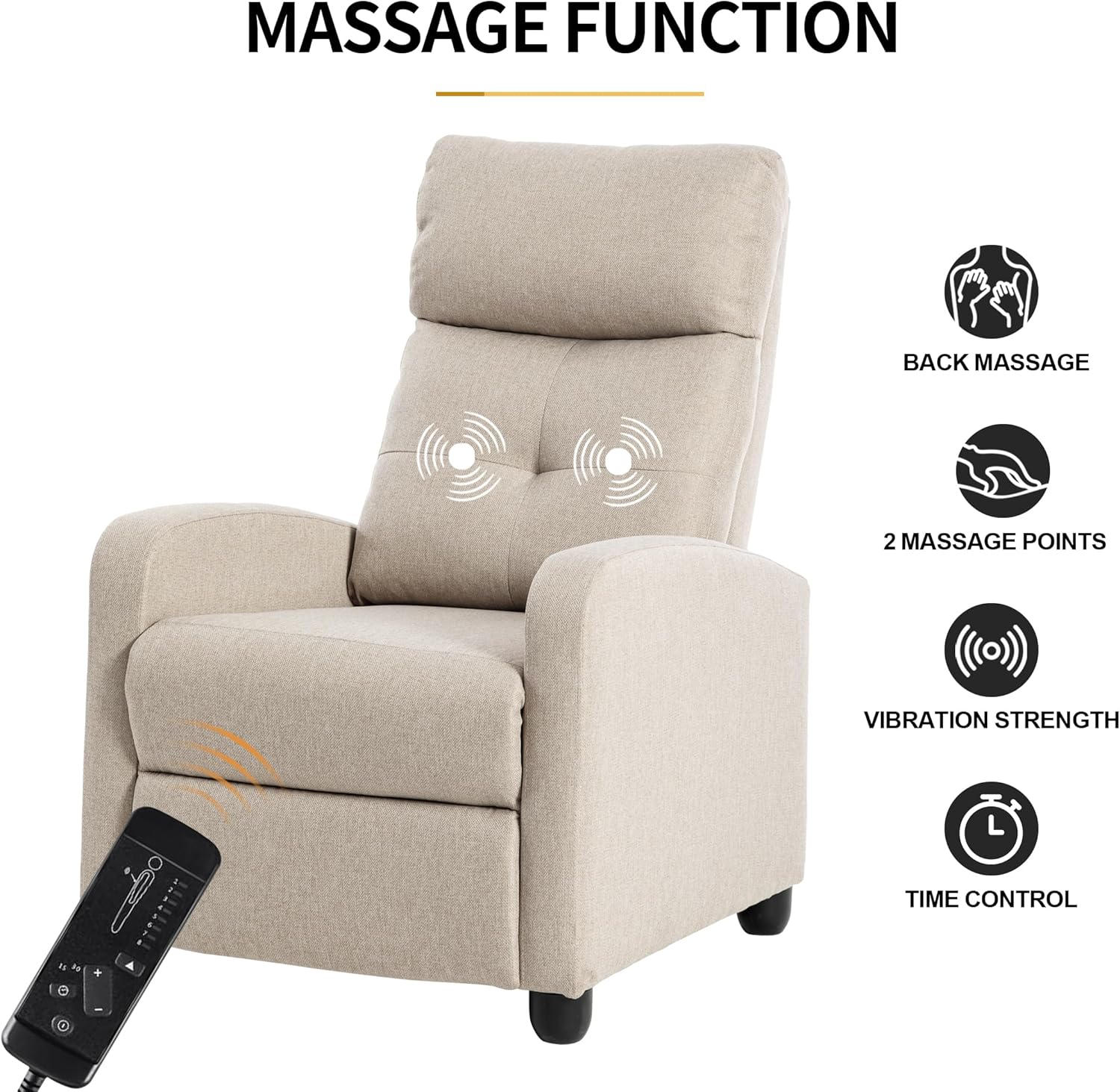 Power Massage Small Recliner Chair, Fabric Recliners for Adults, Adjustable Home Theater Seating with Lumbar Support, Modern Reclining Sofa Chair for Living Room Bedroom (Khaki)