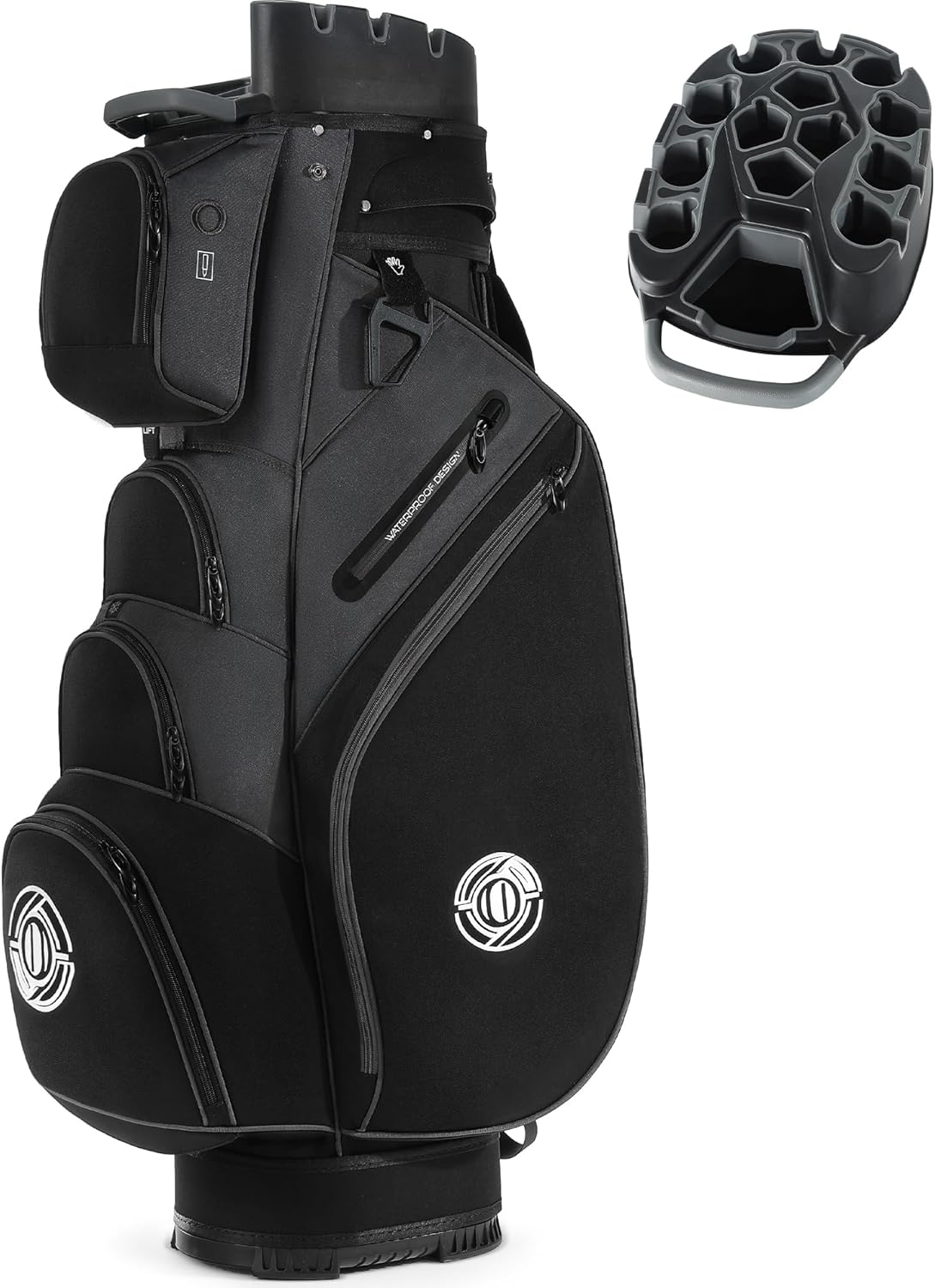 Upgraded Cart Strap Pass: The cart strap pass-through runs behind the pockets, allowing you to secure the bag to a cart without blocking access to your essentials. Enjoy easy organization and uninterrupted access throughout your round