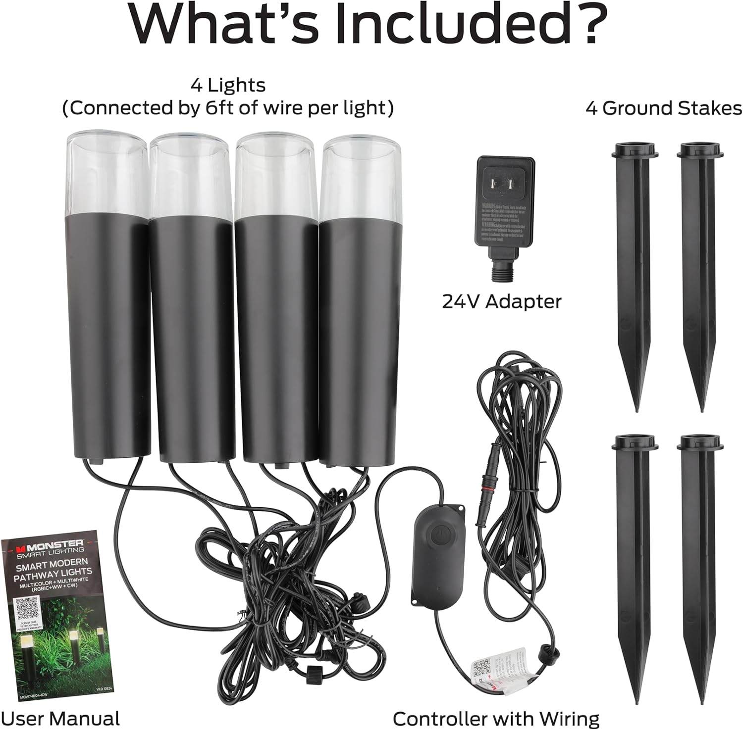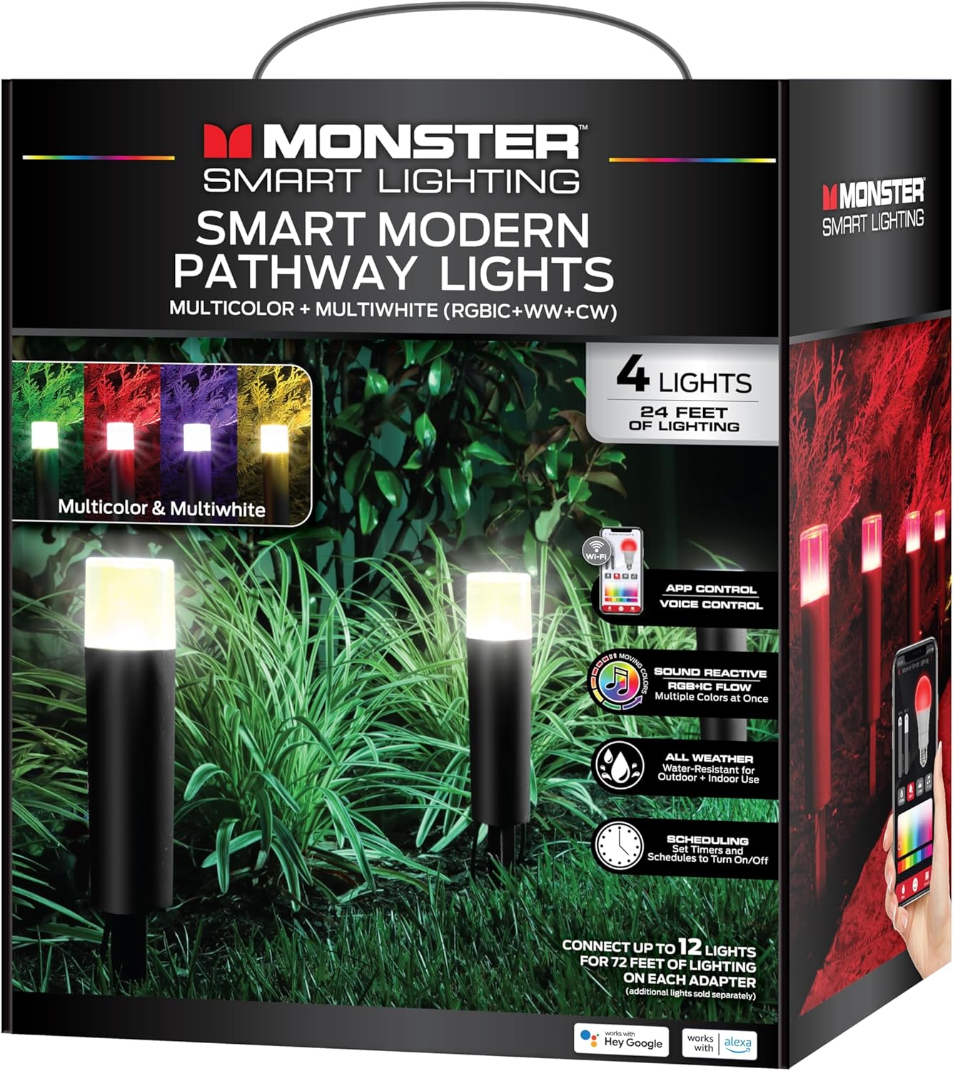 Monster Smart RGB+IC+WW Pathway LED Lights, 4 Individually Controlled Dimmable LEDs, Sound Reactive, IP44 Water & Weather Resistant, Compatible with Alexa, Siri, Google Home, Monster App, Razer Chroma