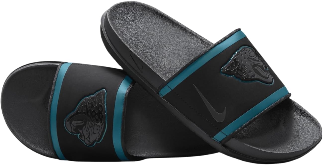 Cheer your team to victory in comfort with the Nike Offcourt (NFL Jacksonville Jaguars) Slide. A cushy synthetic leather strap features your team’s logo, while an innovative foam midsole makes this slide so comfy, you’ll never want to take it off.