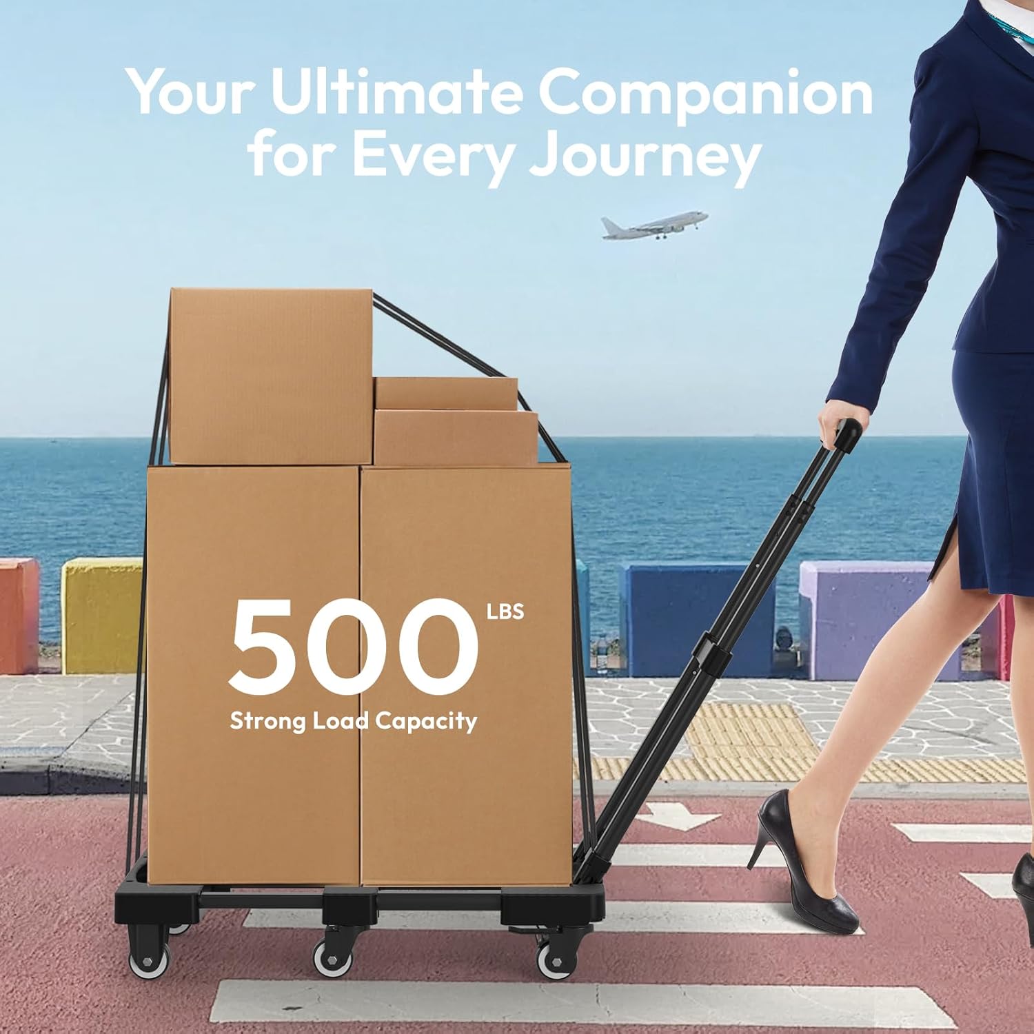 **Strong Load Capacity and Quiet Operation**: Boasting a robust 500LBS load capacity, our hand truck can handle heavy loads with ease, perfect for moving, transporting, and traveling. Enhanced with 6 wheels for whisper-quiet movement - ideal for noise-sensitive environments like offices, libraries, and hospitals