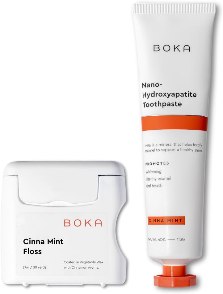 Boka Cinnamint Pack, Fluoride Free Toothpaste - Nano Hydroxyapatite - Cinna Mint 30 Yards, Woven Dental Floss