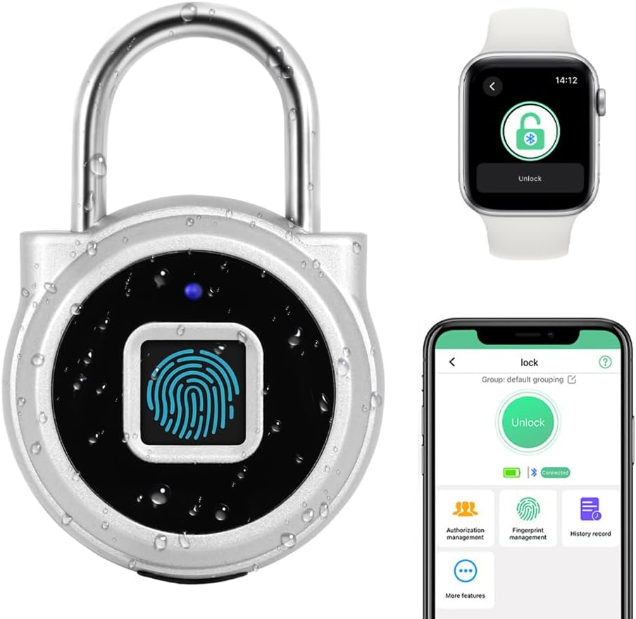 Gym Locker Padlock eLinkSmart Fingerprint Padlock Bluetooth App Authorized View Record Waterproof Security Keyless Smart Combination Lock for Outdoor Locker Backpack Gun Case Silver