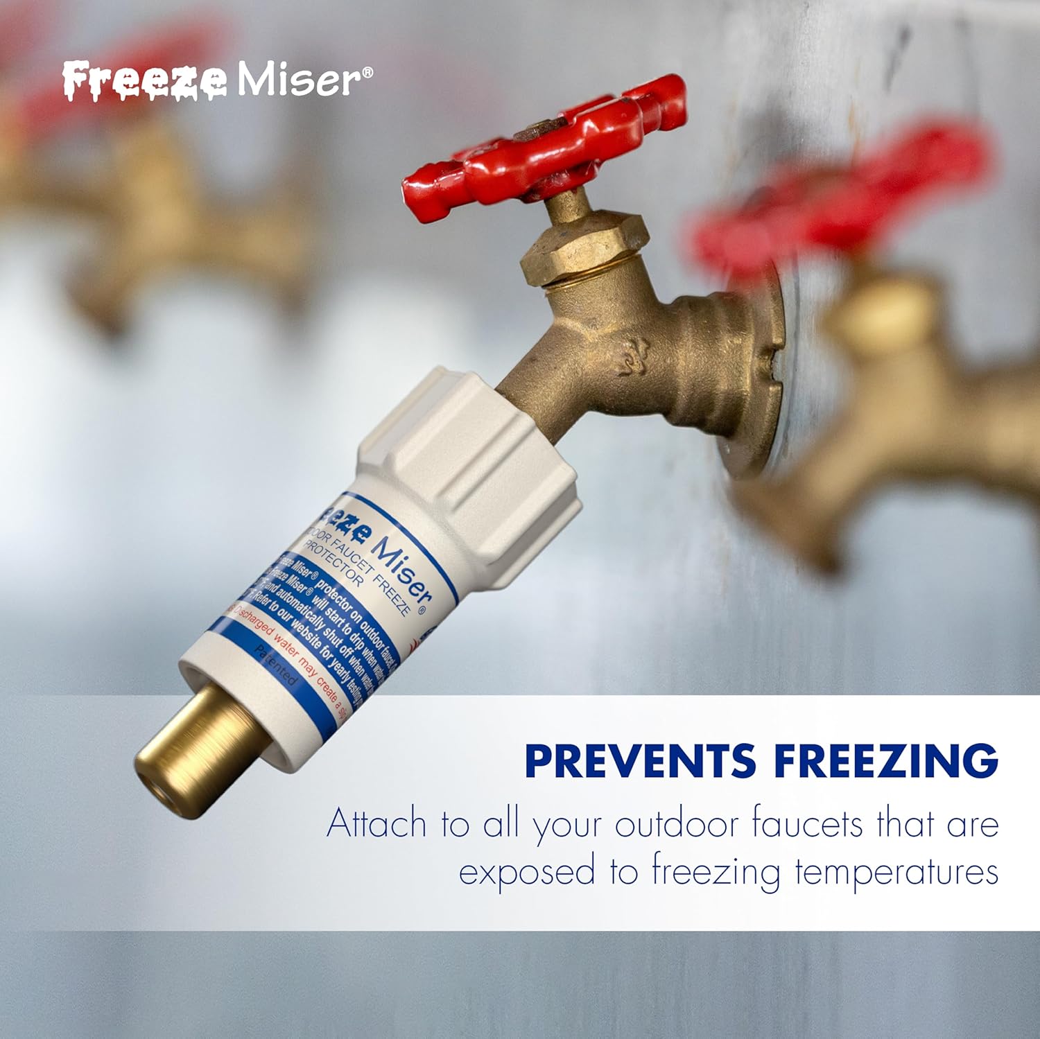 Freeze Miser Outdoor Faucet & Spigot Freeze Protection – Patented Valve Shield, Activates at Water Temperature Below 37°F/3°C – Durable Winter Cover Alternative – Quick Install, Saves Water – 3 Pack