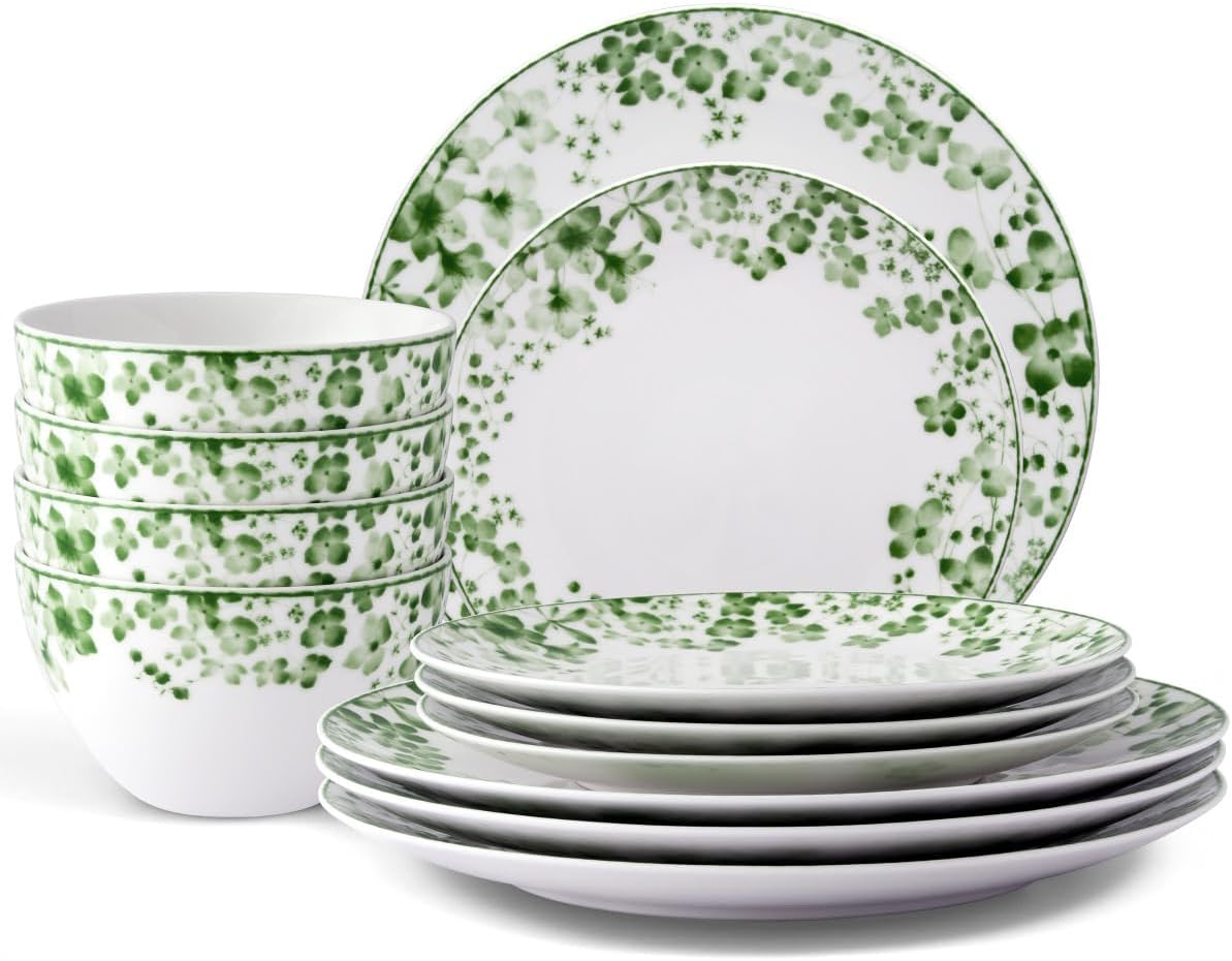 Noritake Bloomington Road Green12-Piece Dinnerware Set, Service for 4