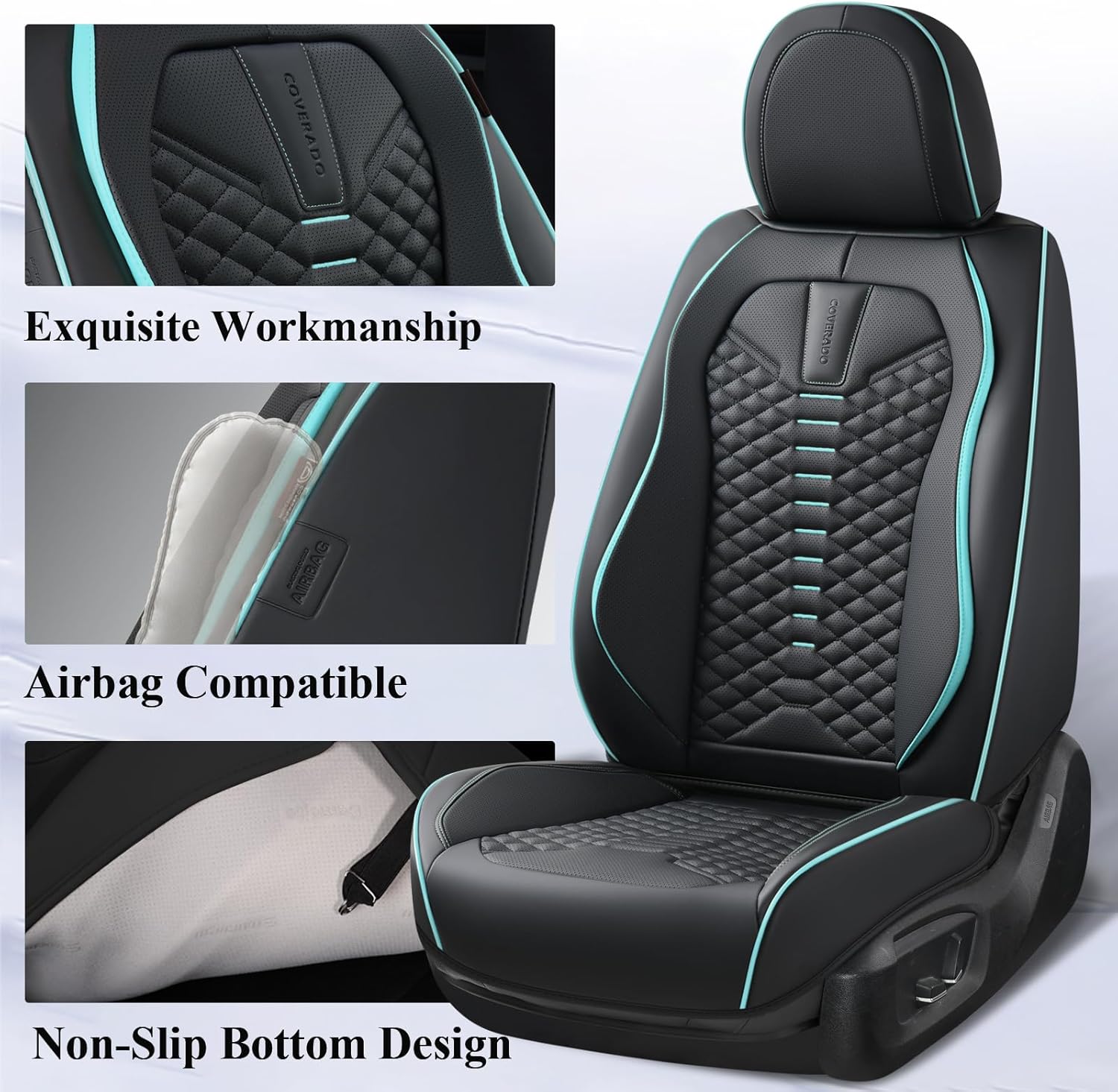 SUPERIOR LEATHER: Coverado seat covers are made from perforated NAPPA LEATHER and DURABLE FAUX LEATHER with high-resilience foam padding. This leather seat covers are resistant to wear, smooth, breathable, and soft to the touch, providing you with a comfortable driving experience