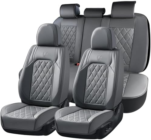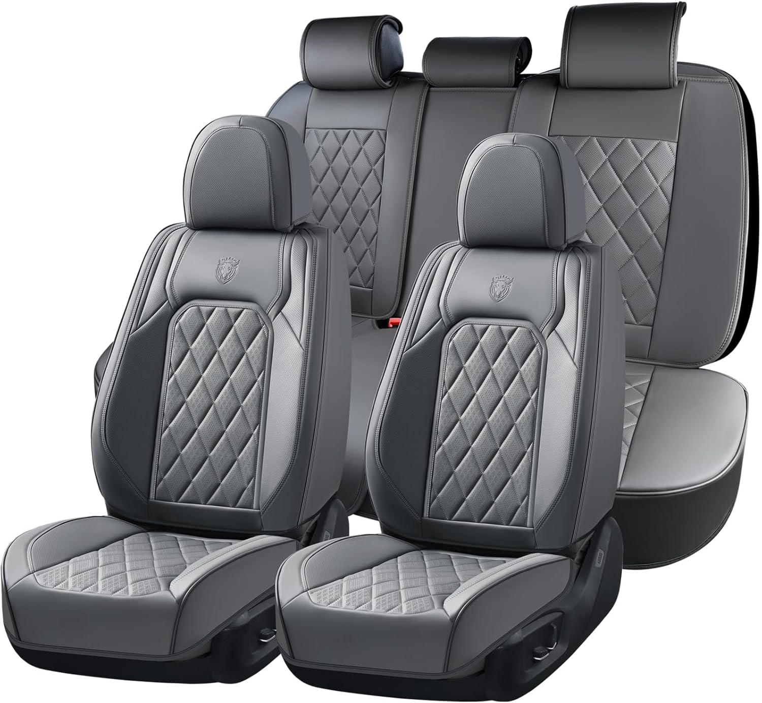 Coverado Car Seat Covers Full Set, Luxury Faux Leather Seat Covers for Cars, Waterproof Car Seat Protector, Gray Car Seat Cover, Universal Automotive Seat Covers Fit for Most Sedan SUV Trucks