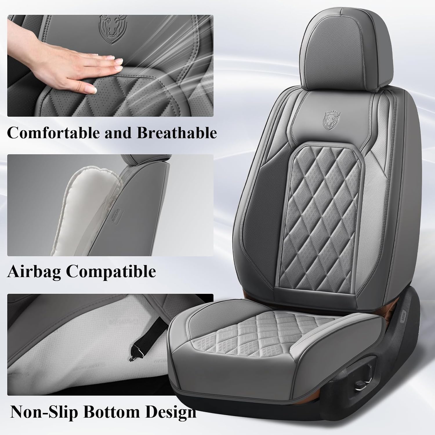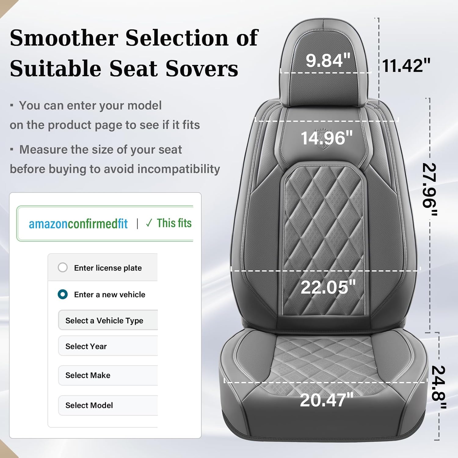 UNIVERSAL FIT: Waterproof car seat cover is 3D modeled and fit for most sedans SUV pick-up truck. These gray car seat covers only cover the seat and do not interfere with the original function. Retains all car functions such as airbags, seat belts, armrests and seat adjustments