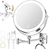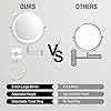 10x Large Wall Mounted Makeup Mirrror, Height Adjustable Lighted Mirror, 8" Double Sided Mirror, 1X/10X Magnifying Bathroom Mirror, 360° Rotation Adjustable, Detachable Ring, 3 Color Lights