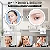 1X /10X double sided mirror design, 1X mirror for regular makeup, 10X magnifying mirror for detailed makeup. 10X magnification is used for applying lipstick, threading eyebrows, putting in contact lenses, facials or applying mascara, etc. Warm Tips: When using a 10x magnifying mirror, please keep a distance of 6 inches to avoid dizziness