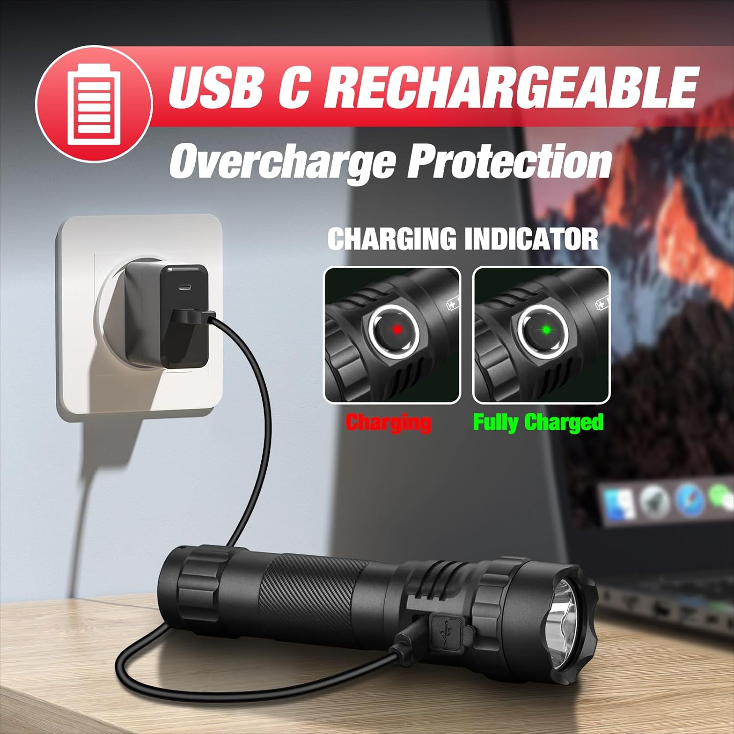 BUILT TO LAST: Crafted from aerospace-grade aluminum alloy, this duty belt flashlight is impact-resistant and pressure-tested for maximum durability. Its non-slip body ensures a secure grip, while the IP67 waterproof rating guarantees reliable performance in any weather