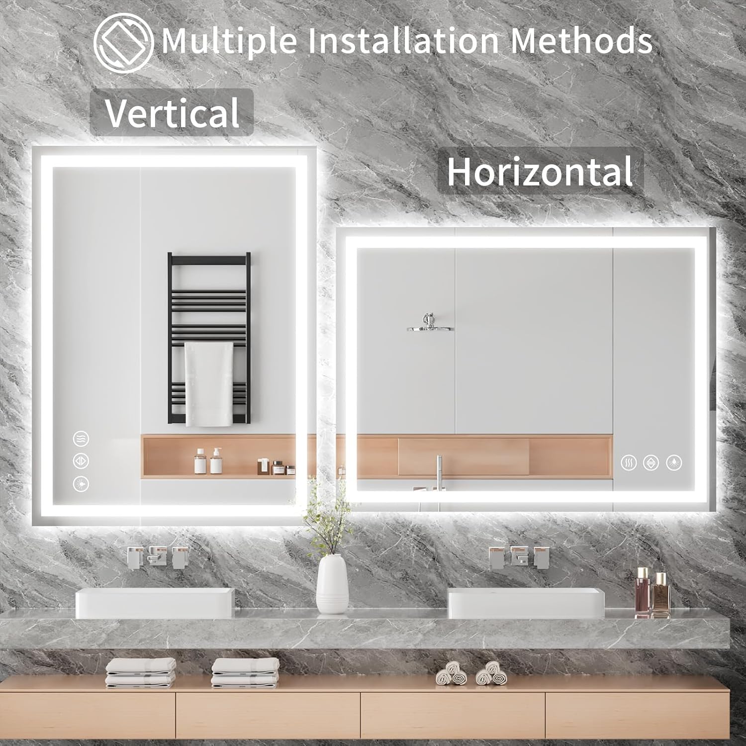 【Easy to Install】Wall vanity LED Bathroom Mirror with Lights can be hung vertically or horizontally, accompanied by the required installation accessories and instructions. The reinforced packaging we use has passed repeated drop tests and impact tests, and reaches customers safely and intact.