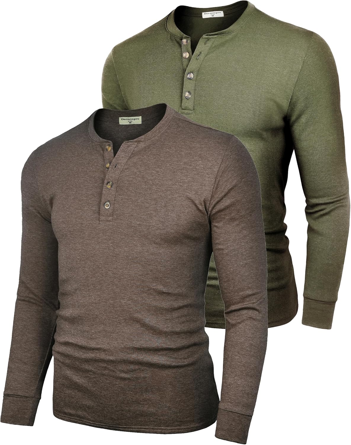 Derminpro Men's Henley Cotton Casual Short/Long Sleeve Lightweight Button T-Shirts