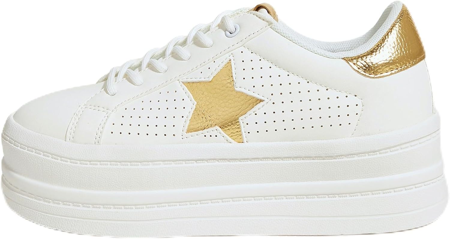 BELOS Fashion Platform Women Sneakers Faux Suede Stars Holographic Rainbow Walking Shoes
