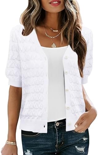 IECCP Cardigan Sweaters for Women Short Sleeve Lightweight Open Front Crochet Knit Shrugs 2025 Womens Fashion