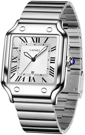 CARLIEN Unisex Classic Square Roman Numerals Silver Analog Waterproof Watches for Women Men Stainless Steel Strap Date Display Casual Wristwatch