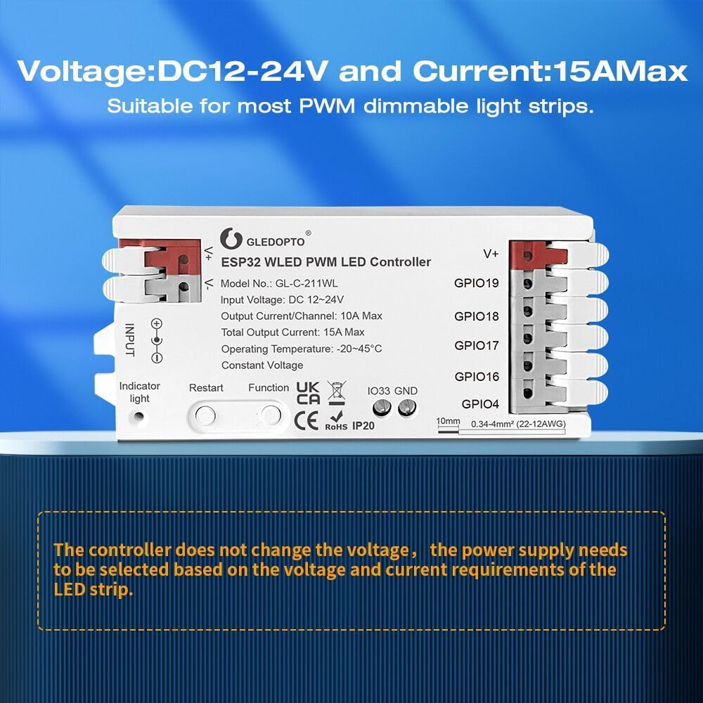 APP Convenient Control: The ESP32 PWM WLED LED controller is Pre installed with WLED firmware, which can be directly controlled via the WLED app using wifi without the need for a gateway. Easily control lights anytime and anywhere