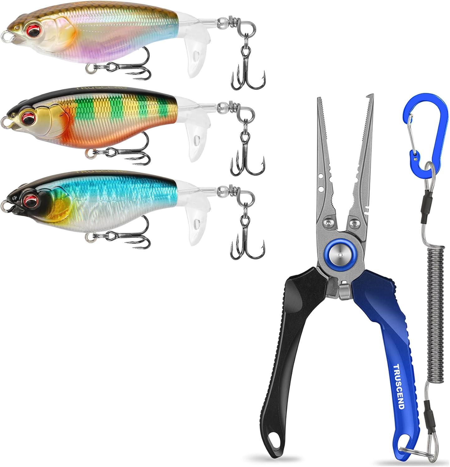 TRUSCEND Top Water Fishing Lures with BKK Hooks, Whopper Fishing Lure for Freshwater or Saltwater, Lockable Handy Fishing Pliers with Innovative Ergonomic Handle, Fishing Gifts for Men