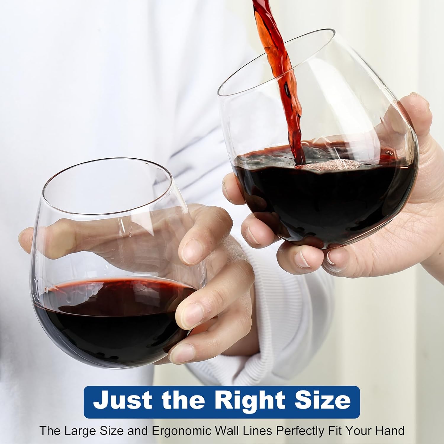 Ergonomic Comfort – The stemless wine glasses feature a curved, non-slip base and a smooth rim for comfortable sipping, making them ideal for indoor or outdoor entertaining.