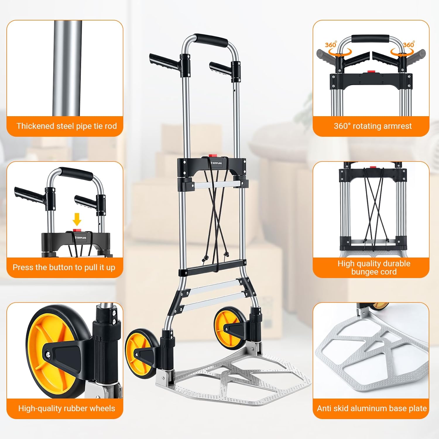 380 LB Capacity Folding Hand Truck Heavy Duty Foldable Dolly Cart with Wheels, Aluminum Collapsible Hand Cart Portable Trolley Dolley with Telescoping Handle for Moving Use Gorpuire