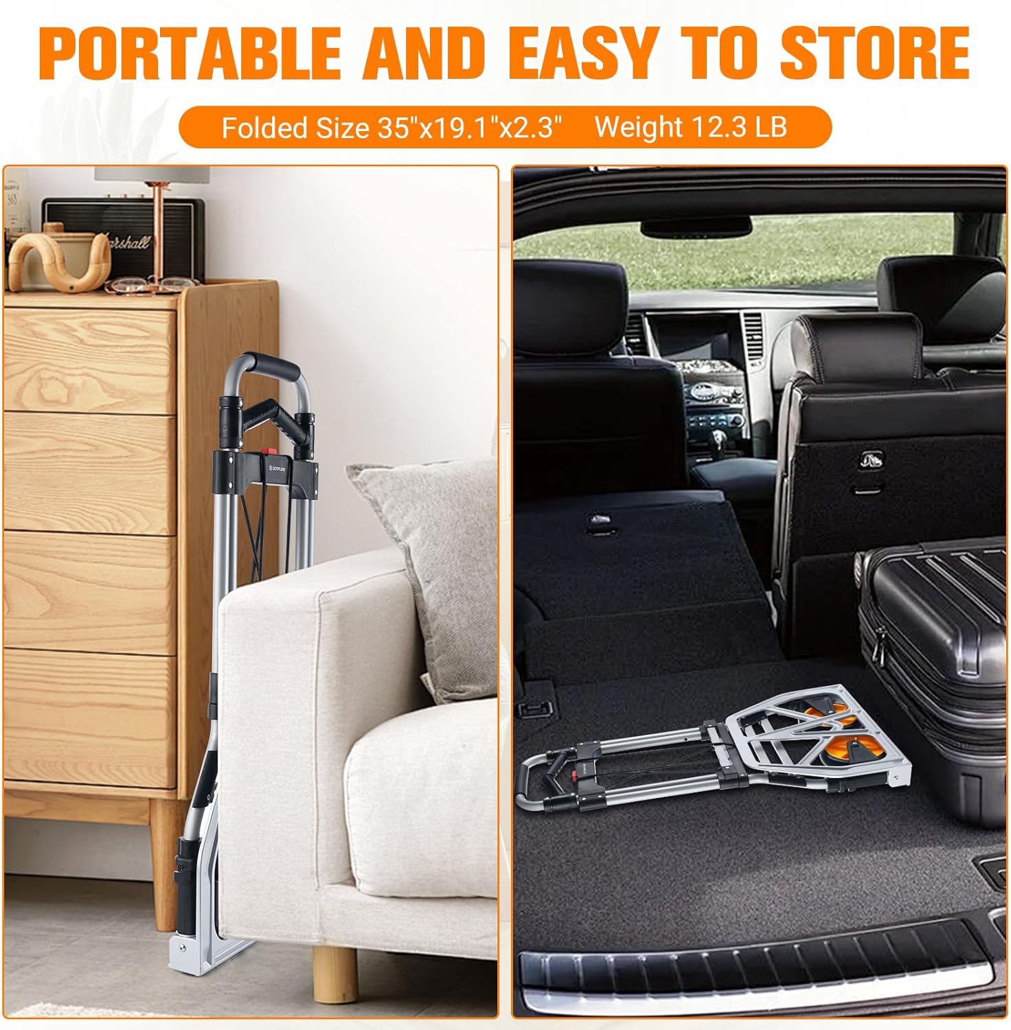 Ready to Use, Convenient and Effortless: This foldable hand truck requires no assembly—just unfold it and adjust the handle to get started. Weighing only 12.3 lbs, this 2 wheel dolly is easy to operate, allowing you to begin your moving tasks quickly and effortlessly, saving both time and energy