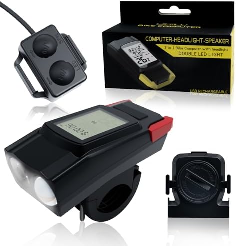 Bike Lights, Bicycle Light with Bike Computer Set,USB Rechargeable IPX4 Waterproof, Front LED Lights with Smart Battery Display & Horn Sounds, Integrated Speedometer & Odometer