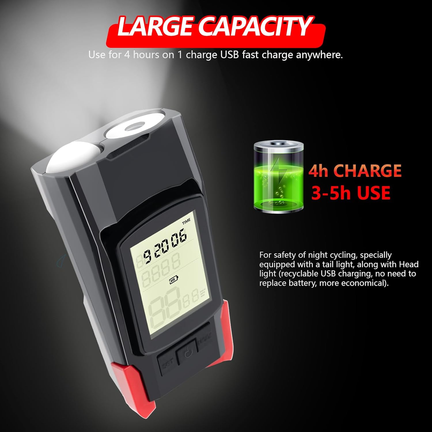 Smart Display with Ride Tracking : The large LCD screen displays real-time battery life, speed, distance, and ride duration - giving you complete control. This innovative bicycle light front combines the functionality of a bike speedometer and headlight for bike in one sleek unit. Perfect for tracking your night rider bike lights performance
