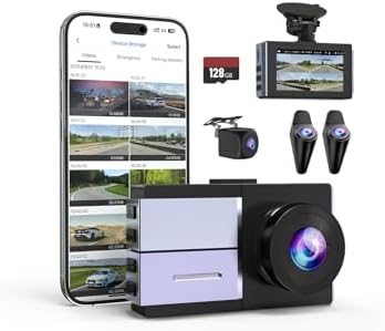 Sprleaf 4-Channel Dash Cam with Front and Rear Cameras, 360° Dashcam,128GB Card Included, 5G Wi-Fi and App Control, Night Vision, WDR, 24-Hour Parking Mode, Collision Detection