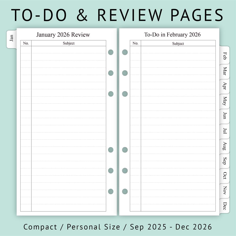 Refill your 3.75"x6.75" ring agenda and keep organized with this 25-26 two-page per month refills that feature laminated tabs, notes section, to-do & review pages.