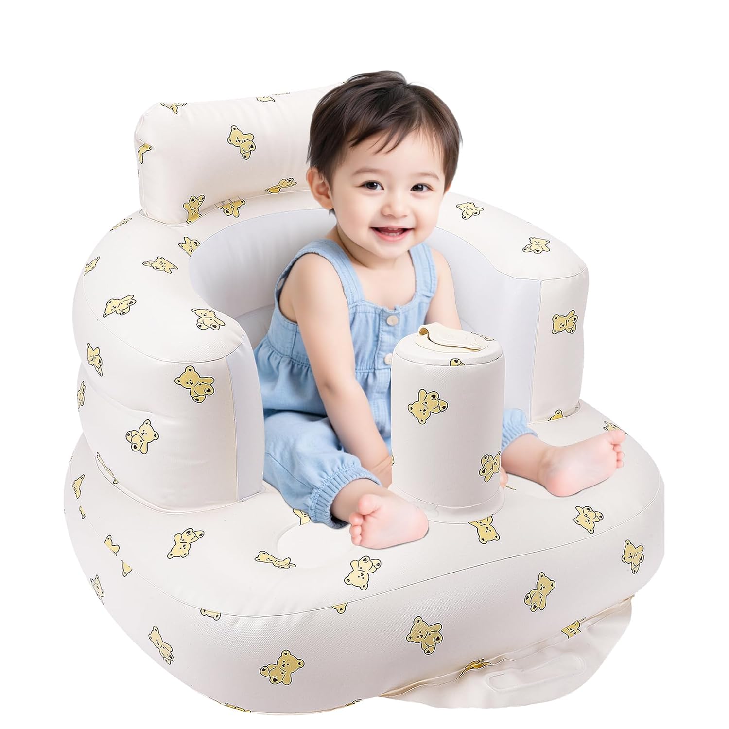 Blow Up Seat for Baby, Inflatable Baby Chair 3 Months & Up, Chair for Babies Sitting Up with Built in Pump (Bear)