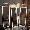 【Super Bright LED Floor Mirror】LED lighted mirror, large enough for you to see your entire figure in a single glance. Adopt 200 LED beads strip, light more concentrated and brighter, energy-efficient. This is not only a floor mirror, but also a piece of art in your house that can bring you a nice mood every day
