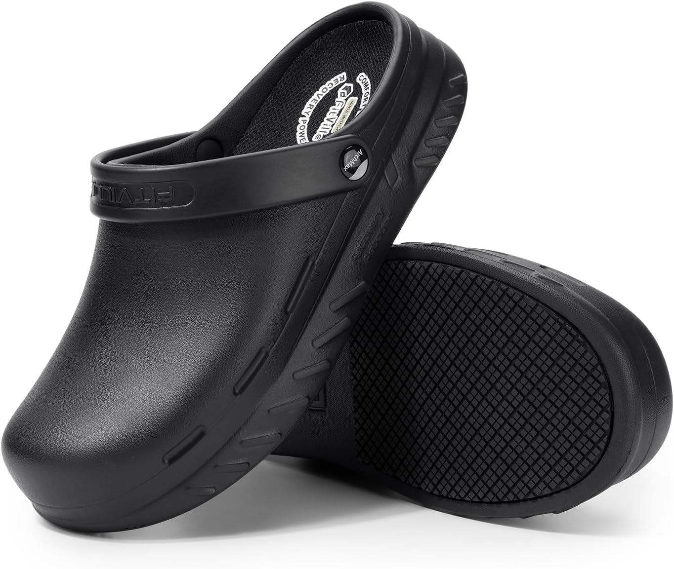 FitVille Wide Chef Clogs for Men Slip Resistant Kitchen Work Shoes Non-Slip for Food Service Waterproof with Arch Support
