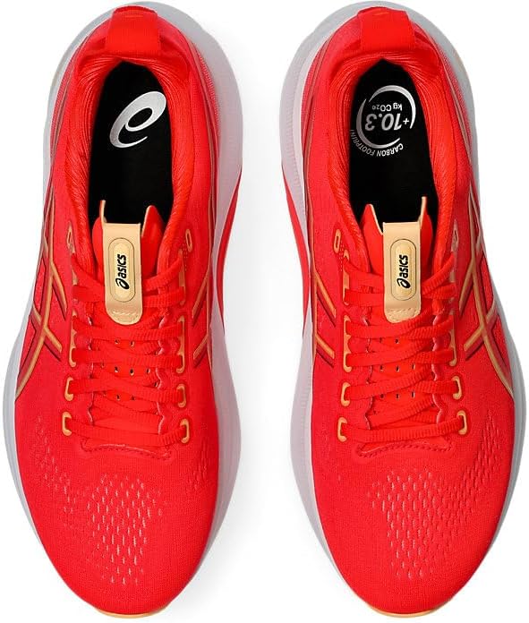 Introducing the ASICS GEL-KAYANO 32 shoe, the pinnacle of support and comfort. The round-toe shoes feature a polyester lining, a low-top design, a lace-up closure, and a signature striped detail at the side panel for an iconic touch. FF BLAST PLUS foam midsole is combined with a higher midsole stack height while reducing it's weight to provide a more balanced experience making your training feel smoother and more comfortable. A reinforced tongue wing along the arch also provides additional comfort and support. The 4D GUIDANCE SYSTEM helps provide adaptive stability. This helps you experience a more supportive and balanced stride during your distance training. Engineered mesh upper: A lightweight mesh material that reduces the need for additional overlays. Knit heel pull tab: This comfortable heel tab makes the shoe easier and more comfortable to put on and take off. 4D GUIDANCE SYSTEM feature: A dynamic pod designed to intuitively respond under excessive load. This response provides stability and comfort for the duration of a run. Rearfoot PureGEL technology: Softer, updated version of our GEL technology. Approximately 65% softer vs standard GEL technology. FF BLAST PLUS cushioning: Midsole foam that provides a blend of cloud-like cushioning and a responsive ride that is lighter than FF BLAST Technology. OrthoLite X-55 sockliner : Premium sockliner that provides cushioning performance and moisture management for a cooler, dryer environment. Reflective details: Designed to help improve visibility in low-light conditions. HYBRID ASICSGRIP outsole: Combines ASICSGRIP rubber and AHARPLUS materials to help provide advanced grip for various terrains and advanced durability. The sockliner is produced with the solution dyeing process that reduces water usage by approximately 33% and carbon emissions by approximately 45% compared to the conventional dyeing technology.