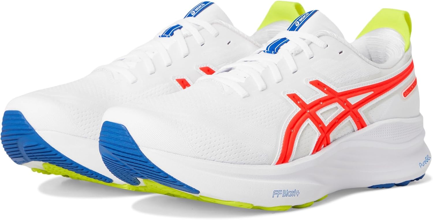 Introducing the ASICS GEL-KAYANO 32 shoe, the pinnacle of support and comfort. The round-toe shoes feature a polyester lining, a low-top design, a lace-up closure, and a signature striped detail at the side panel for an iconic touch. FF BLAST PLUS foam midsole is combined with a higher midsole stack height while reducing it's weight to provide a more balanced experience making your training feel smoother and more comfortable. A reinforced tongue wing along the arch also provides additional comfort and support. The 4D GUIDANCE SYSTEM helps provide adaptive stability. This helps you experience a more supportive and balanced stride during your distance training. Engineered mesh upper: A lightweight mesh material that reduces the need for additional overlays. Knit heel pull tab: This comfortable heel tab makes the shoe easier and more comfortable to put on and take off. 4D GUIDANCE SYSTEM feature: A dynamic pod designed to intuitively respond under excessive load. This response provides stability and comfort for the duration of a run. Rearfoot PureGEL technology: Softer, updated version of our GEL technology. Approximately 65% softer vs standard GEL technology. FF BLAST PLUS cushioning: Midsole foam that provides a blend of cloud-like cushioning and a responsive ride that is lighter than FF BLAST Technology. OrthoLite X-55 sockliner : Premium sockliner that provides cushioning performance and moisture management for a cooler, dryer environment. Reflective details: Designed to help improve visibility in low-light conditions. HYBRID ASICSGRIP outsole: Combines ASICSGRIP rubber and AHARPLUS materials to help provide advanced grip for various terrains and advanced durability. The sockliner is produced with the solution dyeing process that reduces water usage by approximately 33% and carbon emissions by approximately 45% compared to the conventional dyeing technology.